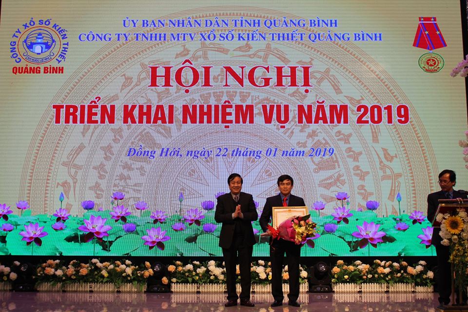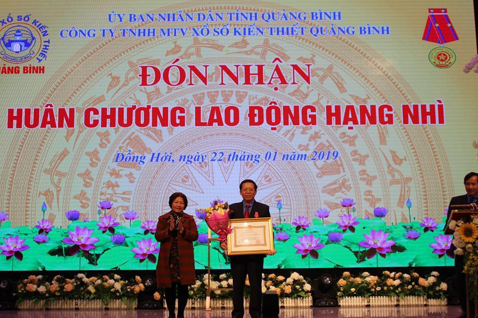Tại buổi Tổng kết hoạt động SXKD năm 2018 và triển khai nhiệm vụ 2019, đồng chí Nguyễn Thị Thanh Hương, UVTV, Phó Chủ tịch Thường trực HĐND tỉnh thừa ủy quyền của Chủ tịch nước đã gắn Huân chương Lao động hạng Nhì cho đồng chí Chủ tịch kiêm GĐ Cty Lê Trọng Huấn, đồng chí Nguyễn Xuân Quang UVTV tỉnh ủy, Phó Chủ tịch Thường trực UBND thừa ủy quyền chủ Thủ tướng Chính phủ trao Bằng khen của Thủ tướng Chính phủ cho đồng chí Lưu Hồng Anh, Phó GĐ XN bao bì Công ty XSKT Quảng Bình, các đồng UVTV, Phó Chủ tịch UBND tỉnh cũng đã trao bằng khen, cờ luân lưu thi đua xuất sắc của Chủ tịch UBND tỉnh cho các tập thể và cá nhân đã hoàn thành xuất sắc nhiệm vụ năm 2018