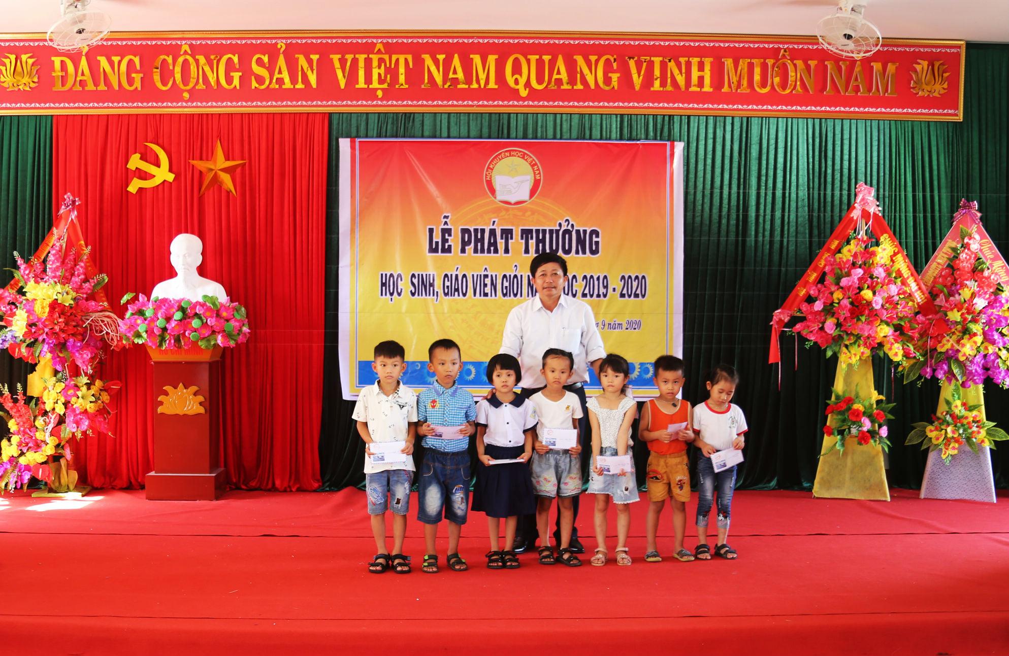 Anh Nguyễn Trọng Khánh tặng quà cho các cháu mần non cháu ngoan Bác Hồ (ảnh Nguyễn Chung Quý)