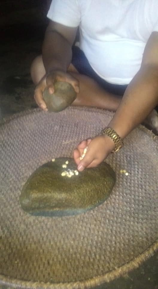 Cục đá để đập vừa đủ nặng để đập vỡ hạt bắp, vừa để người đập không bị mỏi tay, cũng không quá nhỏ, nếu không sơ ý là đập nát mấy đầu ngón tay người dùng.