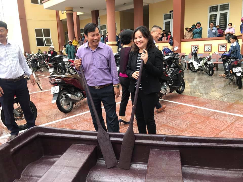 Ảnh: Chị Lưu Thị Kim Liên tặng xuồng cho quê