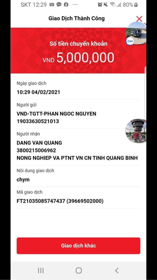 Hai vợ chồng cháu Quang Nga biếu Họ Đặng 5 triệu đồng để tặng quà cho các cụ cao niên trong Họ, khi Tết đến Xuân về.