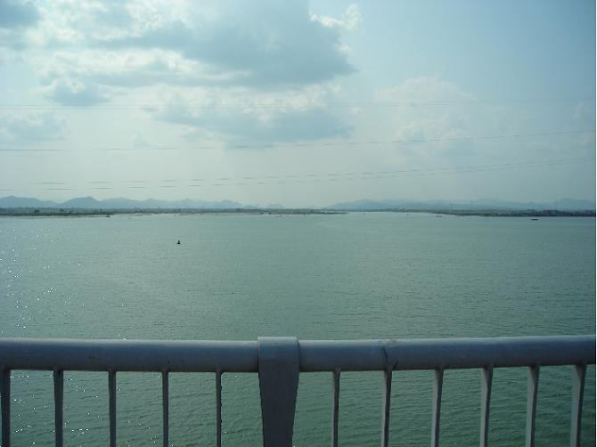 Ba cồn cát phù sa giữa dòng Linh Giang, nhìn từ cầu Gianh.