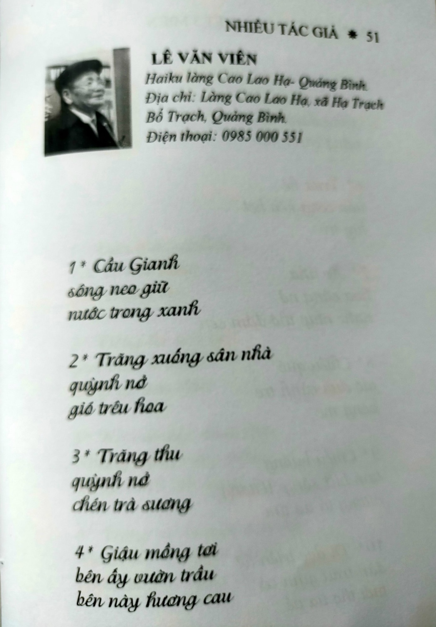 Chùm haiku của bác Lê Văn Viên in trong tập haiku 3 miền03:24 - 09/07/2024 Giới thiệu chùm Haiku của bác Lê Văn Viên in trong tập Haiku 3 miền do Nhà Xuất bản Thuận Hóa ấn hành năm 2023 Tác giả: Lê Văn ViênChia sẻ: