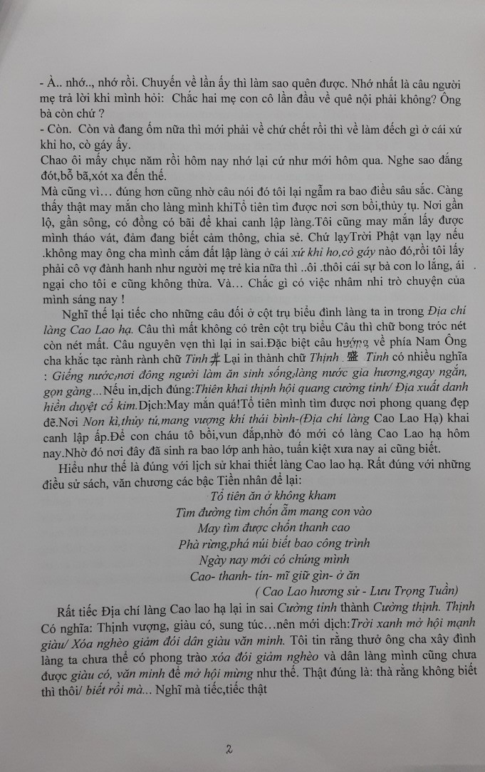 Cao Lao, Hạ Trạch quê mình. Bốn bề phong cảnh hữu tình nước non. Cao Lao tiền thế đặt tên. Cao trông vời vợi, Lao bền không xiêu