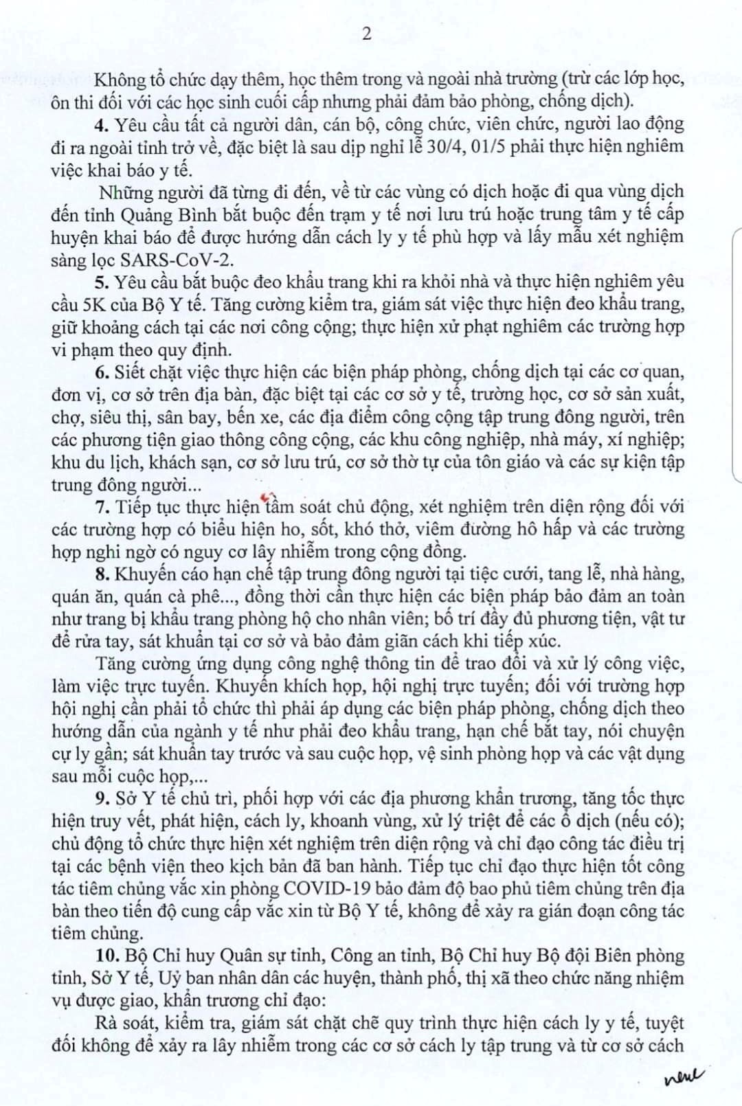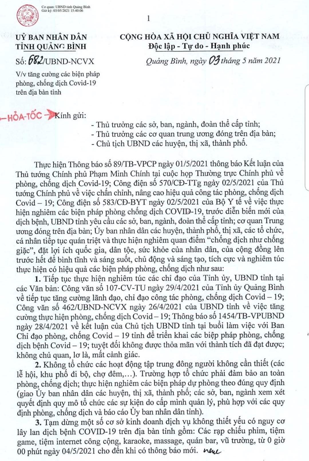 Công văn của UBND tỉnh Quảng Bình về việc tăng cường các biện pháp phòng chống Covid 19 trên địa bàn tỉnh
