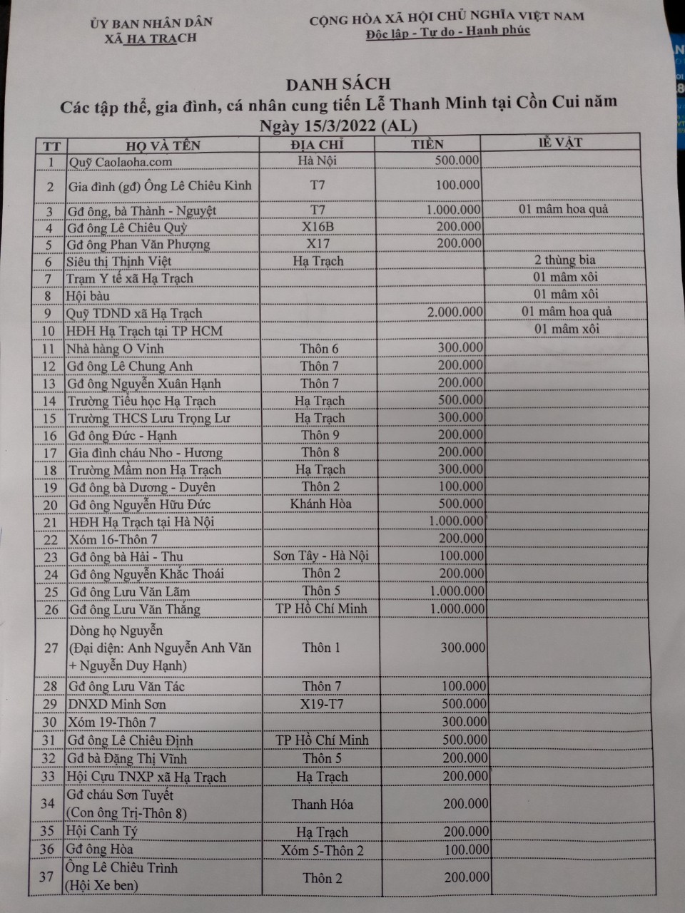 Cung tiến lễ thanh minh Cồn cui năm 202214:24 - 16/04/2022 Danh sách các tập thể và cá nhân cung tiến tại lễ Thanh minh Cồn Cui năm 2022 Tác giả: Lưu Bá LâmChia sẻ: