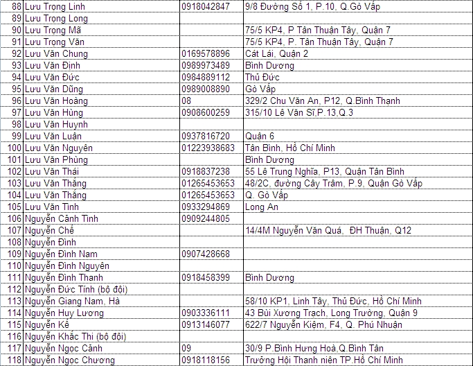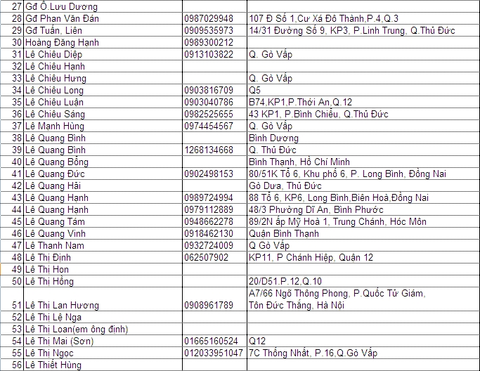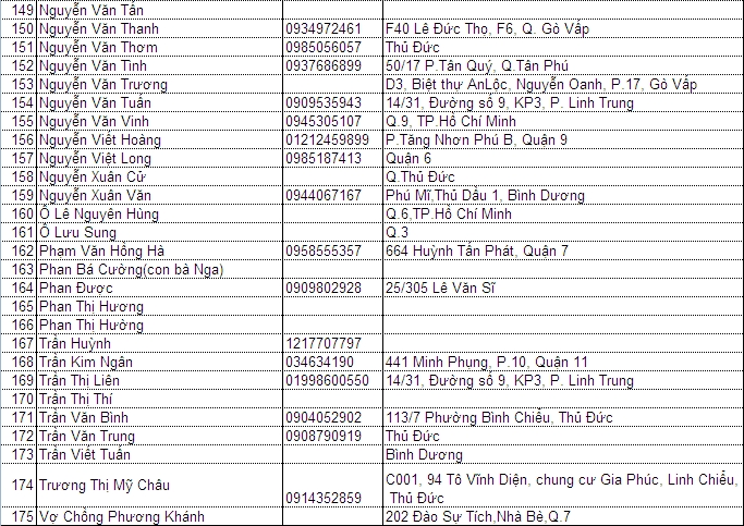 Bà con nào đang sinh sống ở Tp Hồ Chí Minh chưa có tên trong danh sách hoặc có tên nhưng thông tin chưa chính xác, chưa đủ vui lòng thông báo cho Ban biên tập để cập nhật tiếp.