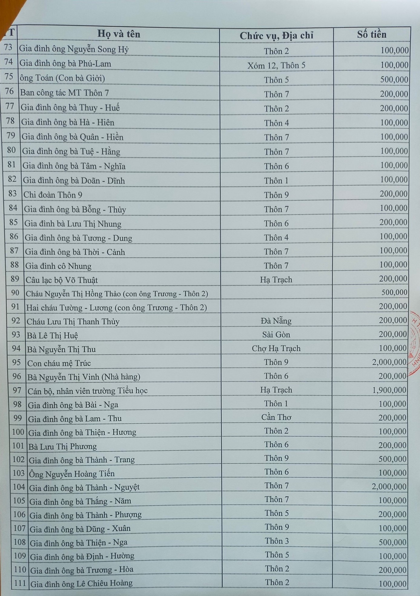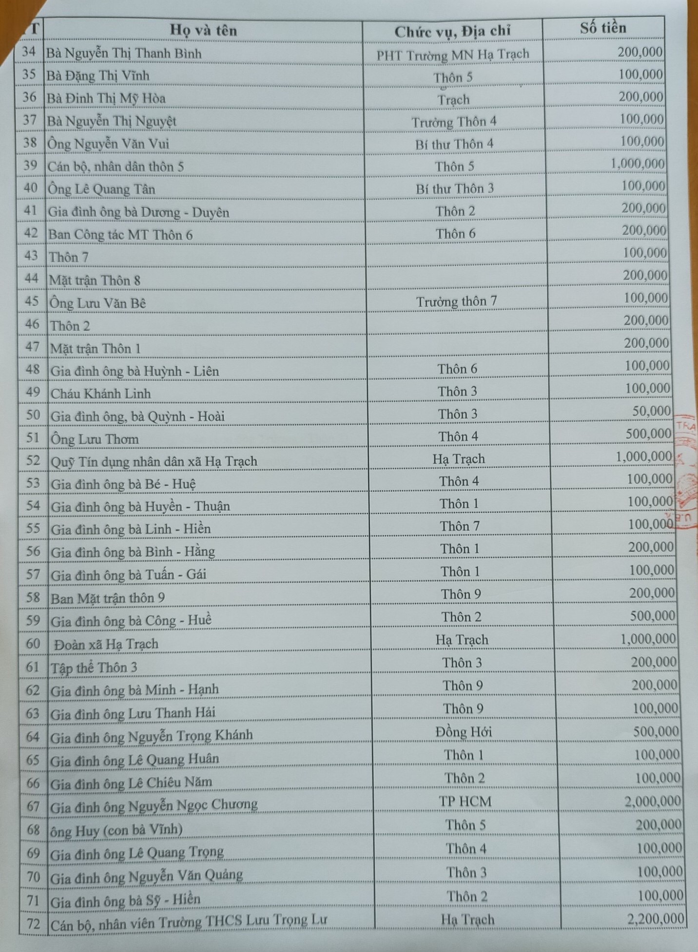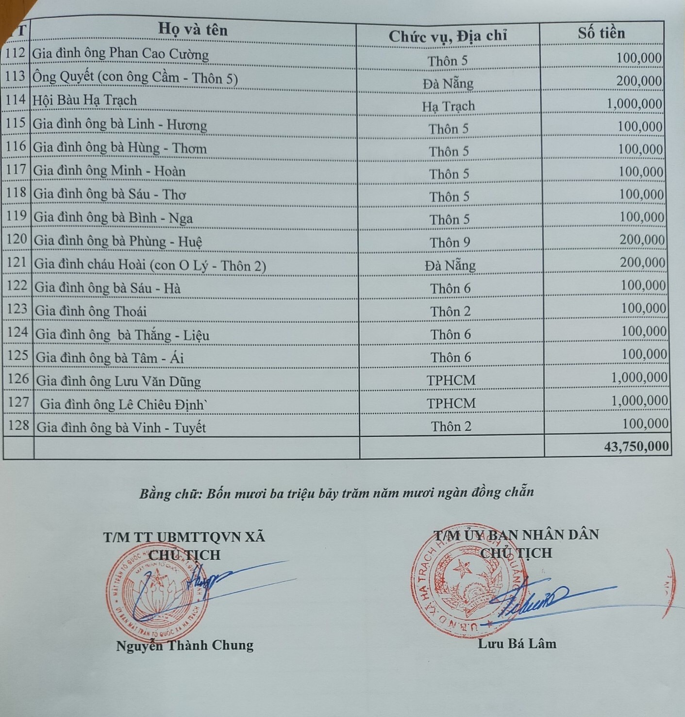 Kết thúc đêm liên hoan, Quỹ vì người nghèo của xã Hạ Trạch đã nhận được số tiền 43.650.000 đồng từ 128 tập thể, cá nhân, nhà hảo tâm.