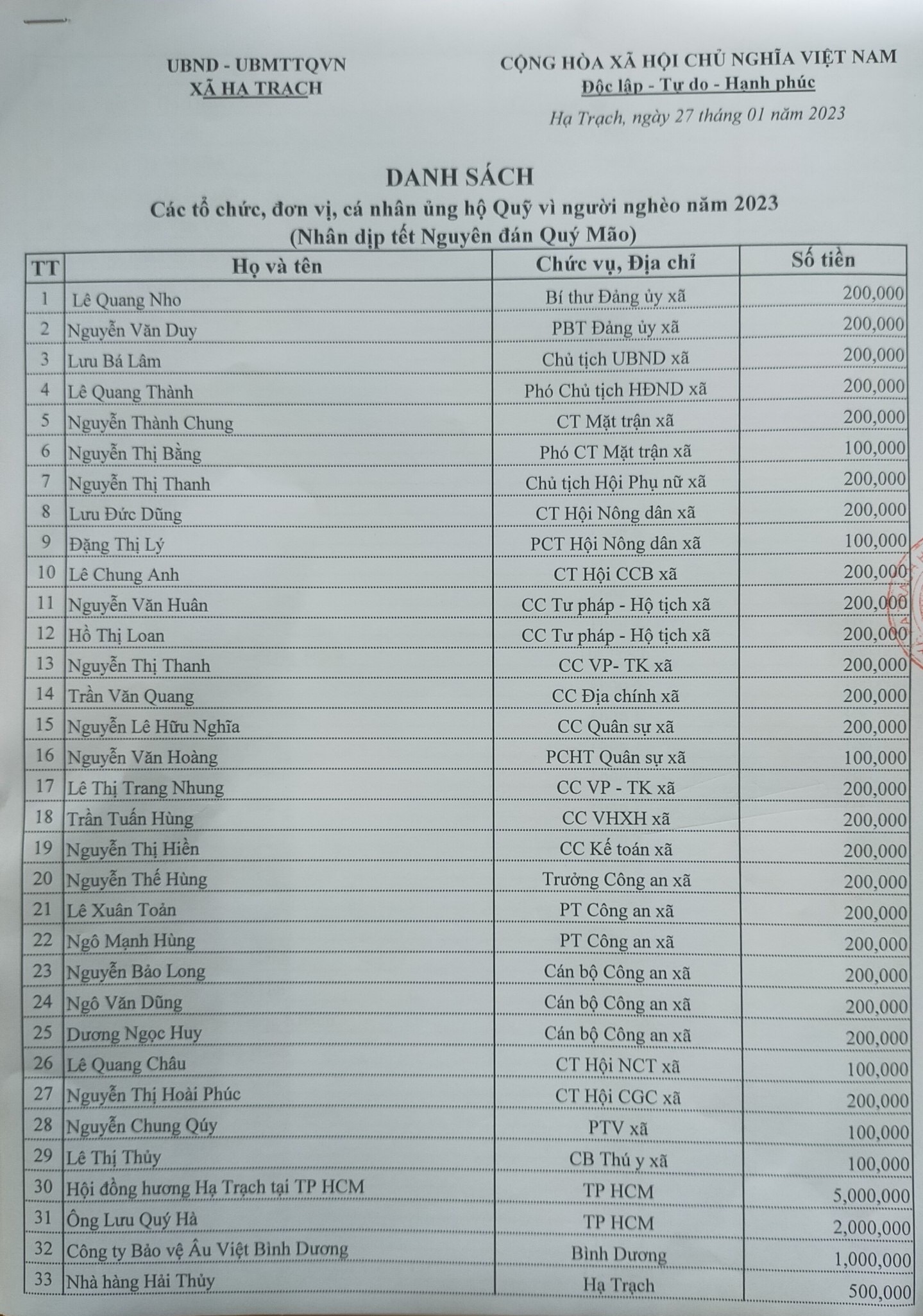 Danh sách các tập thể và cá nhân ủng hộ quỹ vì người nghèo năm 2023