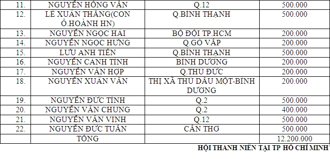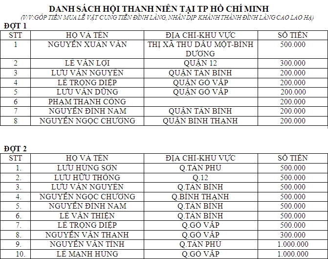 Danh sách hội thanh niên tại TPHCM góp tiền mua lễ vật cung tiến Đình làng