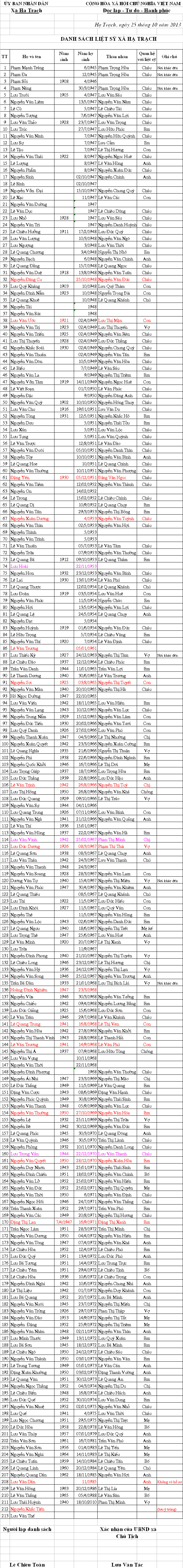 Danh sách liệt sĩ được hiệu chỉnh để khắc tên tại nhà bia17:01 - 15/11/2013Danh sách liệt sĩ được hiệu chỉnh để khắc tên tại nhà bia do UBND xã Hạ Trạch cung cấp .Tác giả: UBND xã Hạ TrạchChia sẻ: