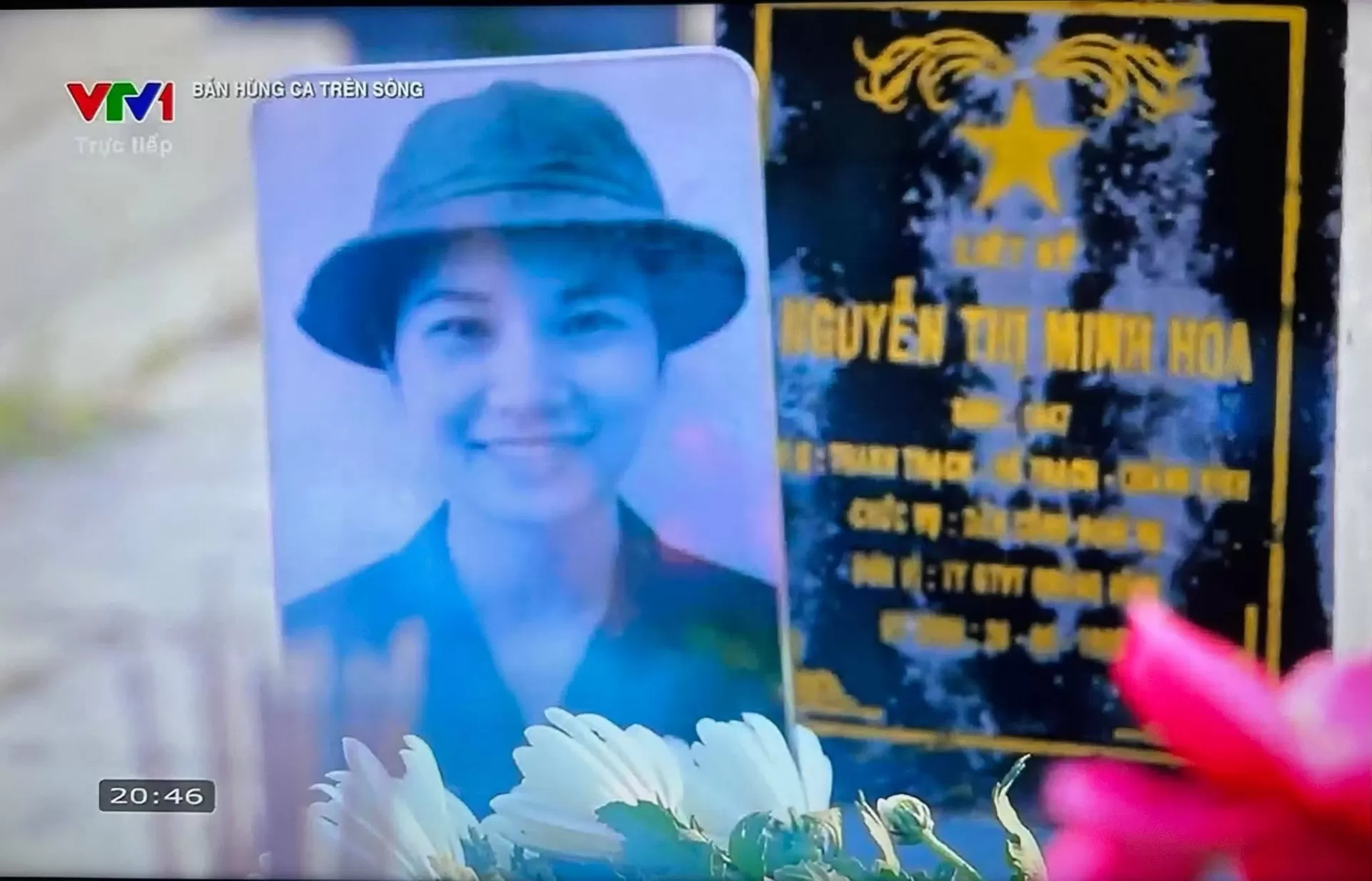 Hình ảnh em ngồi bên ngôi mộ chị cùng bó hoa Trắng và Di ảnh được Phóng viên Đài VTV từ Thủ đô đưa dòng chữ: LIỆT SĨ NGUYỄN THỊ MINH HOA hy sinh ngày 26/8/1966, lên sóng truyền hình quốc gia. Cái chết của chị vì dân vì nước vì những quả tên lửa SAM - 2, vượt sông trong chiến dịch K4 cũng toại nguyện và ấm Hương hồn Chị.