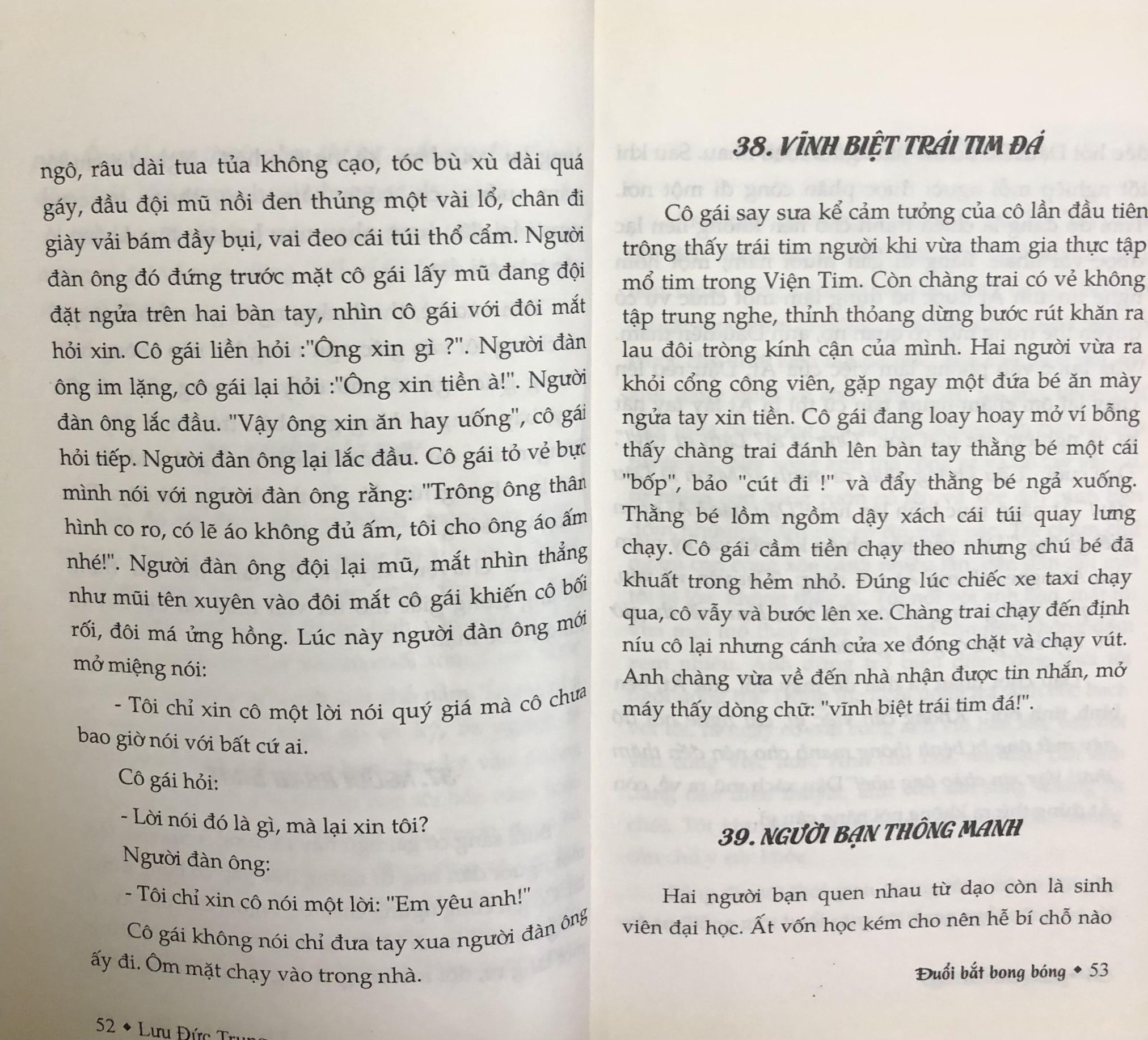 Đuổi bắt bong bóng14:17 - 13/07/2023 Giới thiệu những câu chuyện cực ngắn của NGUT. PGS Lưu Đức Trung (câu chuyện 31,32,33,34,35,36,37,38) Tác giả: Lưu Đức TrungChia sẻ: