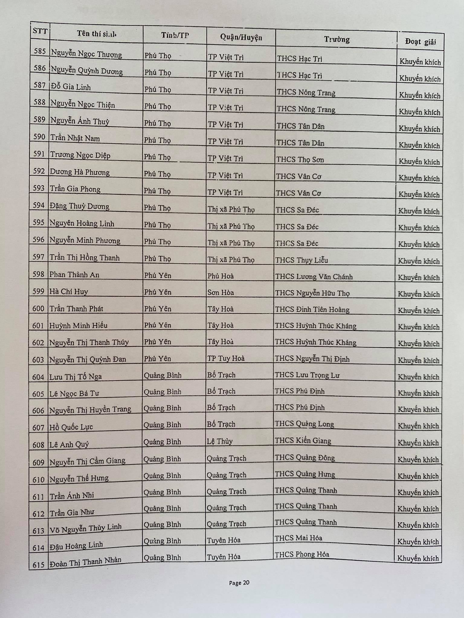 Em Lưu Tố Nga có thứ tự số 604 trong danh sách khen thưởng