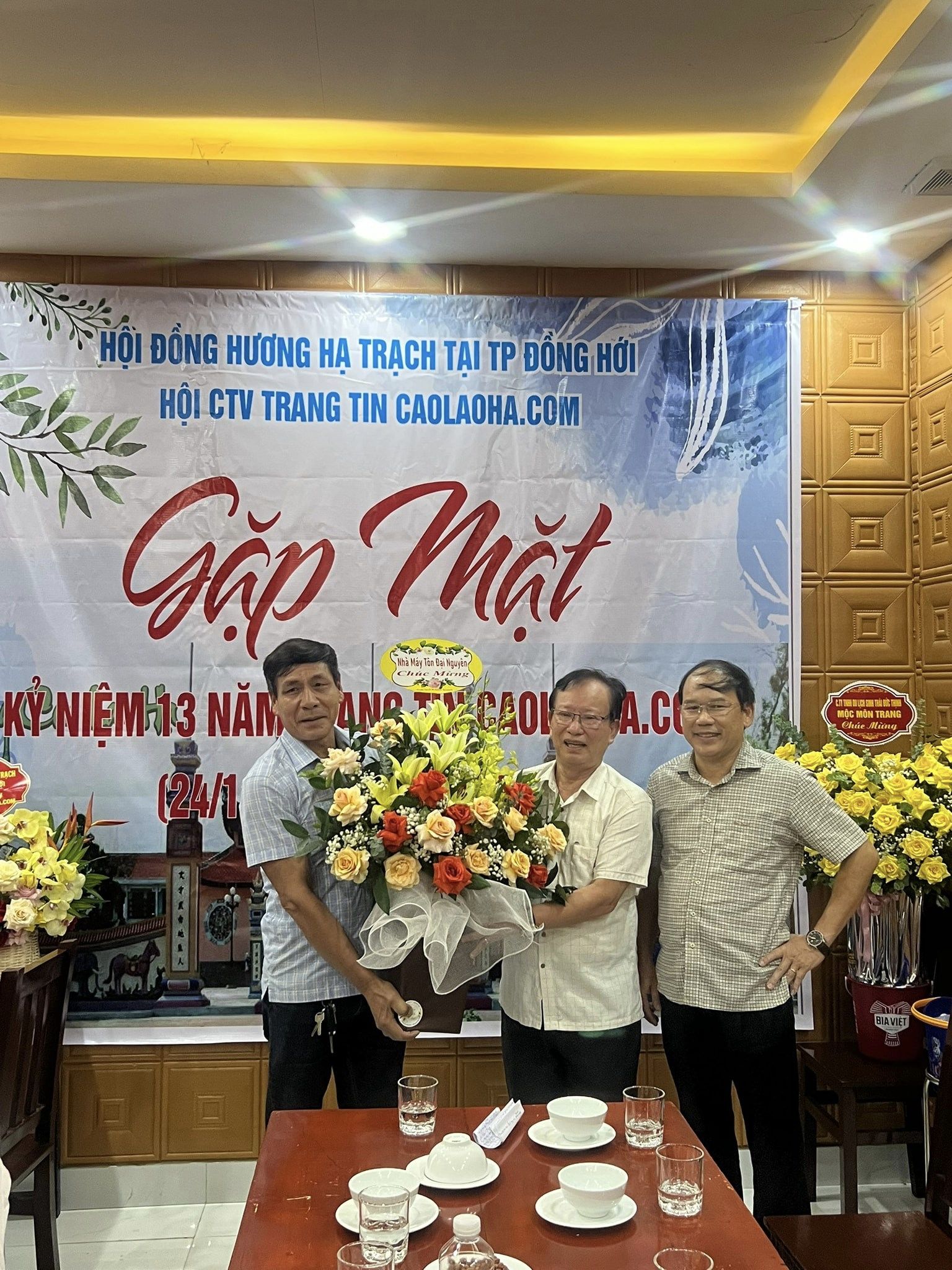 Ngày 22/10/2023, Hội cộng tác viên Trang tin caolaoha.com tại Tp Đồng Hới tổ chức gặp mặt, tọa đàm nhân Kỷ niệm 13 năm Trang tin caolaoha.com ra đời (24/10/2010- 24/10/2023). Tham dự buổi tọa đàm có ông Lê Ngọc Linh Hội trưởng và các ông Thường trực Hội đồng hương Hạ Trạch tại Tp. Đồng Hới; ông Lưu Quý Hà, Hội trưởng đồng hương Hạ Trạch tại Tp. Hồ Chí Minh; và các ông bà cộng tác viên và những người yêu Trang tin caolaoha.com tại Tp. Đồng Hới.