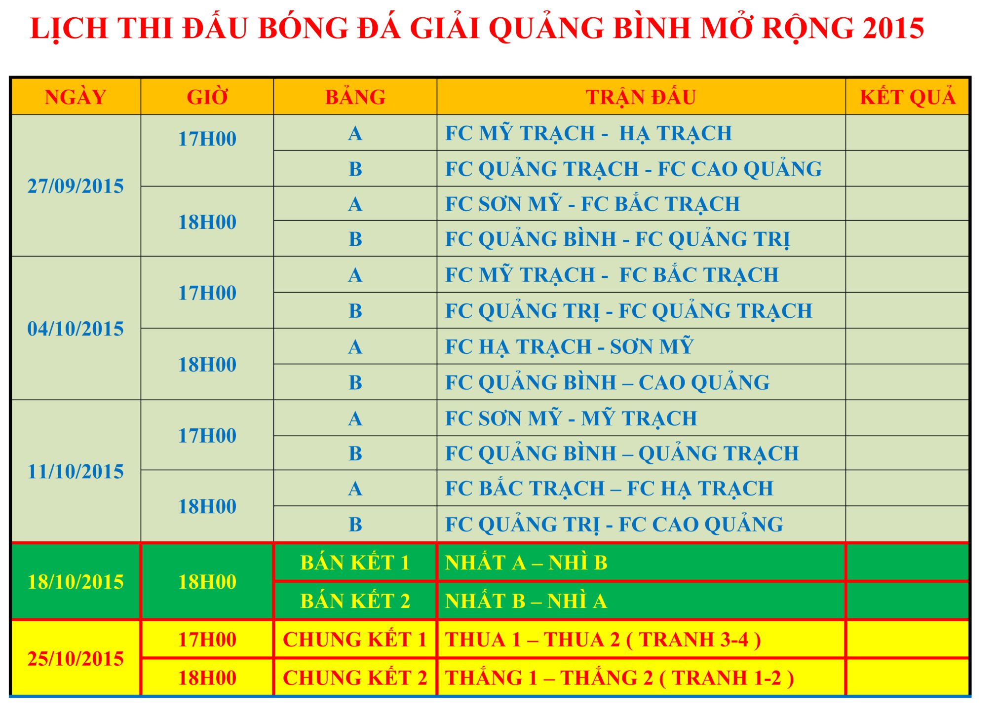 Ban liên lạc Hội đồng hương - Hội thanh niên Cao Lao Hạ tại khu vực Nam bộ thông báo đá bóng nam, Giải Bóng Đá Quảng Bình Mở Rộng 2015, giữa FC Cao Lao Hạ và FC các xã, Thị Trấn, Huyện, Thành Phố, Tỉnh, trong và ngoài tỉnh Quảng Bình tại Miền nam.