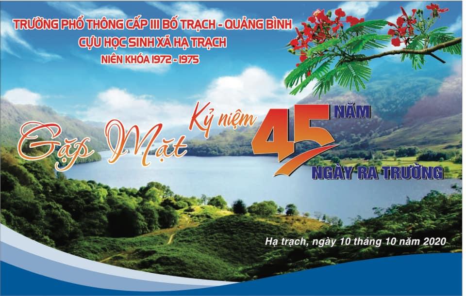 Những ngày qua, các bạn của tôi, những Cựu học sinh Hạ Trạch học cấp ba Bố Trạch niên khoá 1972 - 1975 đang háo hức chờ đón một cuộc gặp mặt, sau 45 năm xa cách. Người nhắn tin, kẻ điện thoại, gần thì tìm nhau gặp trước, xa thì điện Zalo có hình để nhận nhau kẻo khi gặp lại khỏi ngỡ ngàng, bở ngỡ. Vui, thổn thức, những kỷ niệm xa xưa cứ ùa về trong tâm trí, tưởng đã phủ mờ theo khói bụi thời gian.