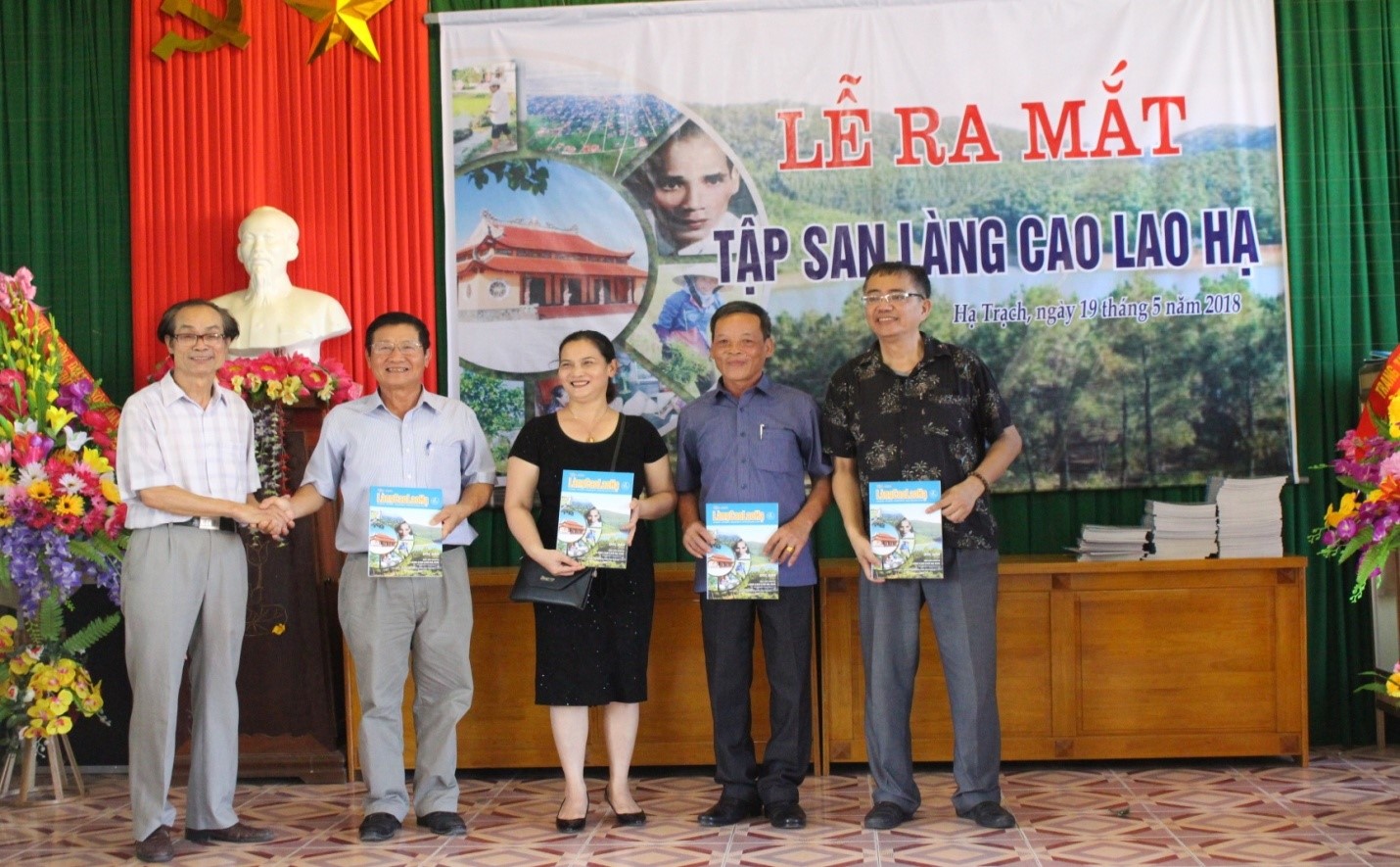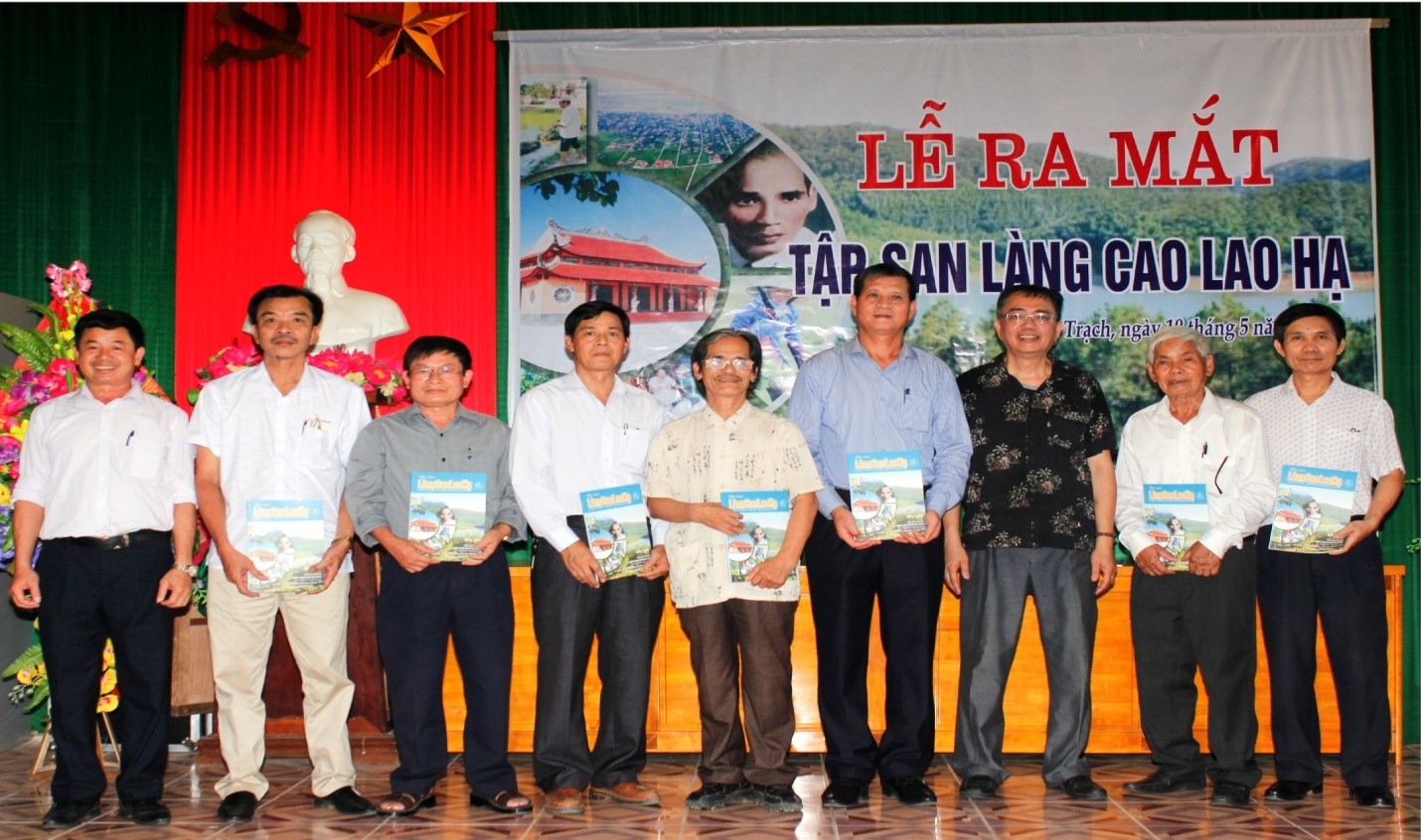 Tặng Tập san cho các cấp lãnh đạo xã (ảnh Lê Chiêu Chúc)