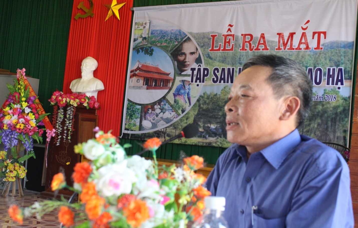 Anh Lê Quang Nho, Bí thư Đảng ủy xã tổng kết lễ ra mắt Tập San (ảnh Lê Chiêu Phùng)