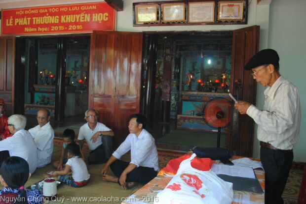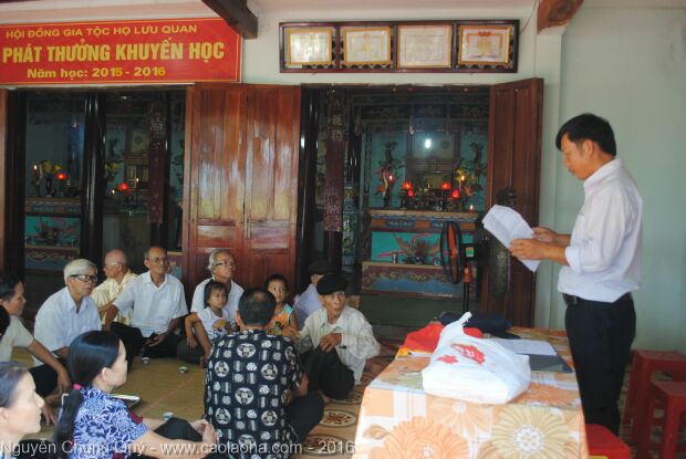 Họ Lưu Quan tổ chức Lễ phát thưởng cho các cháu đạt thành tích năm học 2015 – 2016 do anh Nguyễn Chung Quý thực hiện