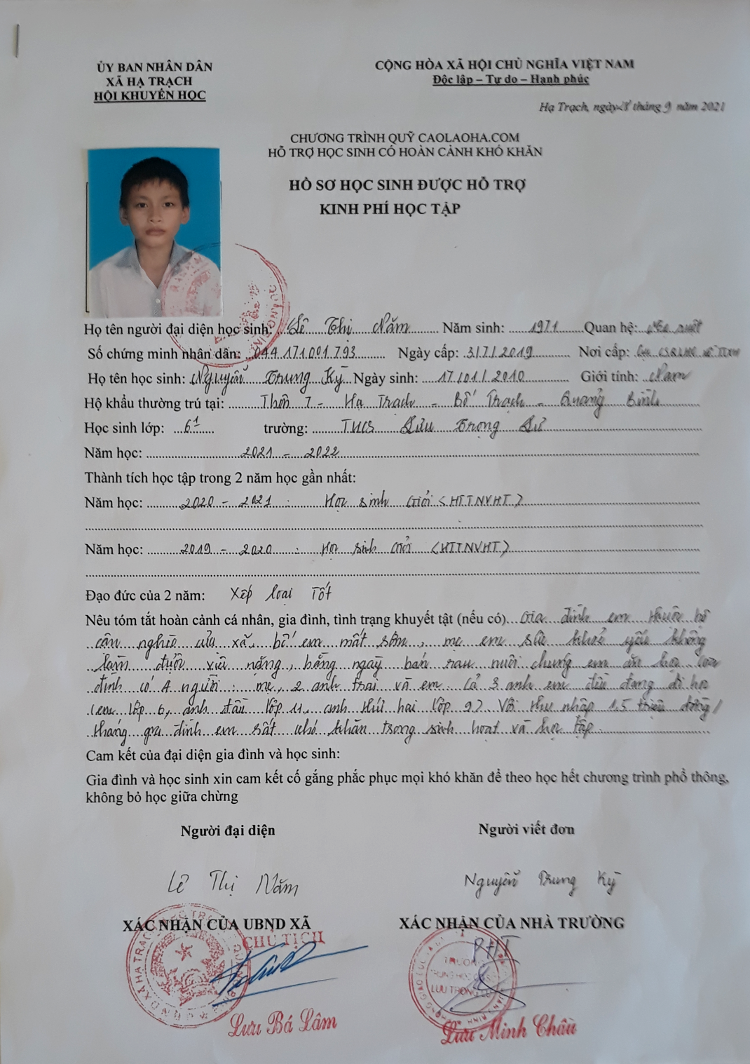 Do nguồn kinh phí của quỹ caolaoha.com còn hạn chế nên bước đầu chỉ hỗ trợ được cho 5 cháu học sinh; sau này số học sinh được hỗ trợ sẽ nhiều hơn nếu quỹ thu xếp được thêm kinh phí. Cụ thể nội dung chương trình hỗ trợ như sau: