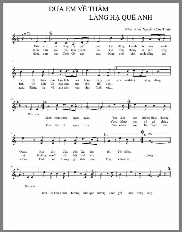 Vui lòng xem ca khúc Đưa em về làng Hạ quê em: Nhạc và lời của anh Nguyễn Công Tranh, người Cao Lao Hạ taik đây