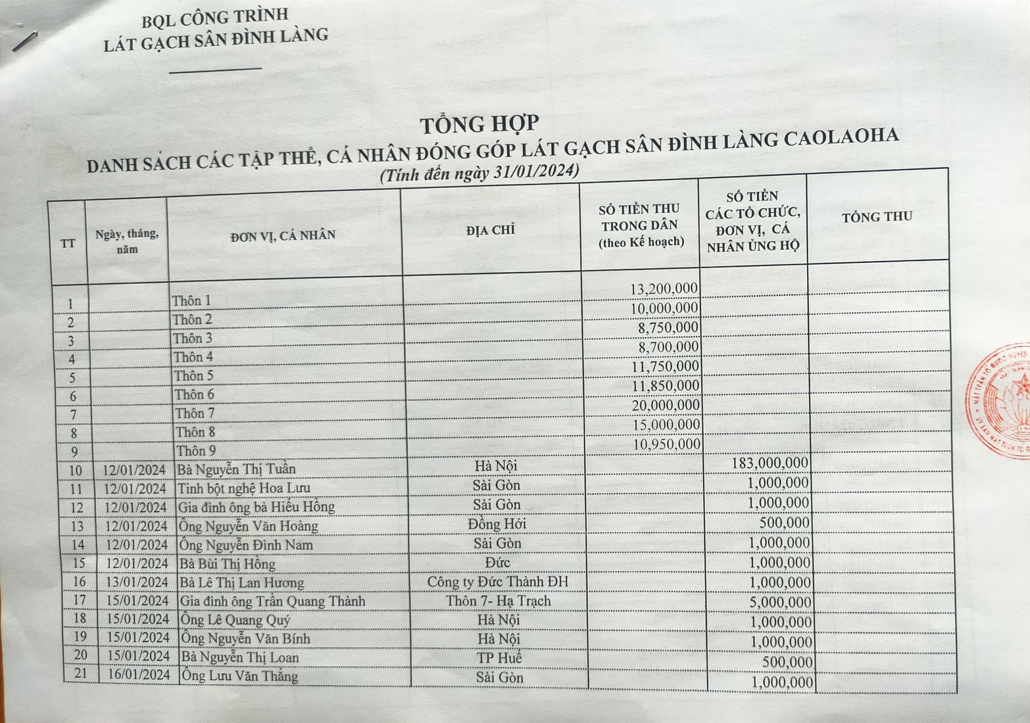 Hoàn thành lát gạch sân Đình làng Cao Lao Hạ18:34 - 02/02/2024 Báo cáo của UBMTTQ xã Hạ Trạch về việc hoàn thành công trình lát gạch sân đình làng Cao Lao Hạ Tác giả: Nguyễn Thành ChungChia sẻ: