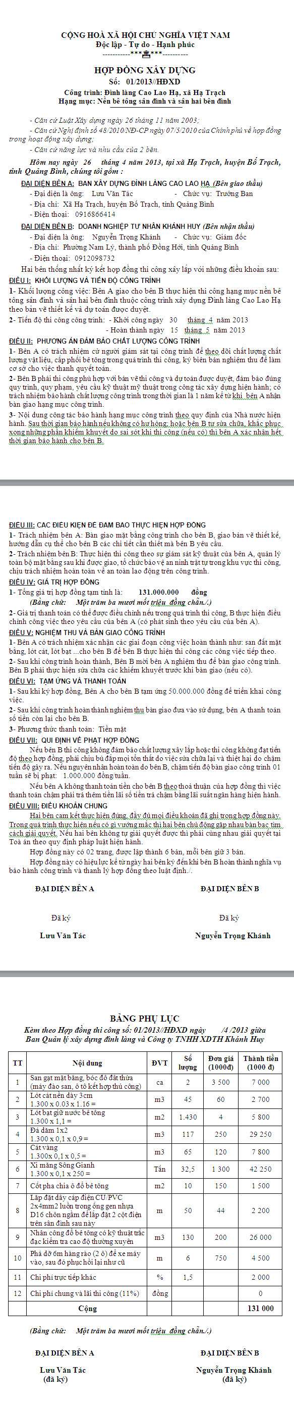 Hợp đồng xây dựng nền bê tông sân Đình