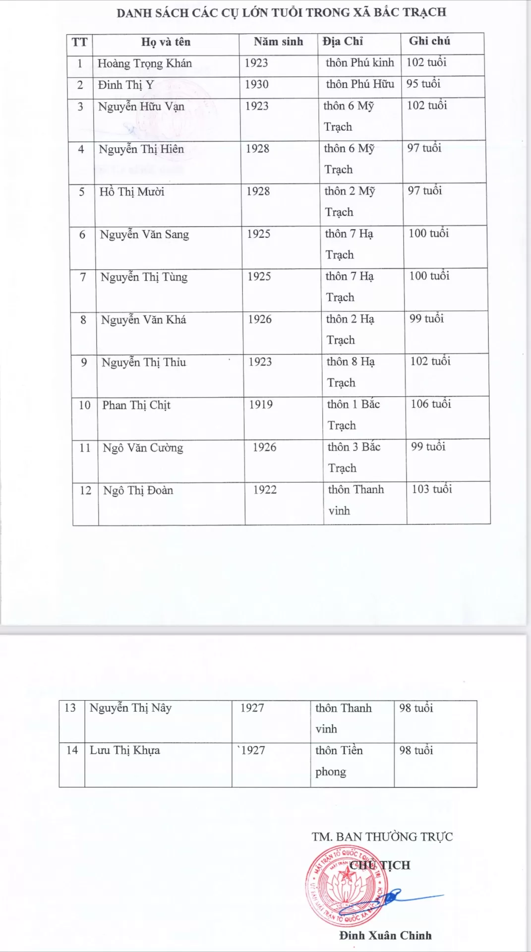 Chân thành cám ơn UBMTTQVN xã Bắc Trạch đã hỗ trợ thông tin cho caolaoha.com và sẽ thay mặt trang tin chuyển quà đến các cụ vào dịp Tết Nguyên Đán Bính Ngọ 2026