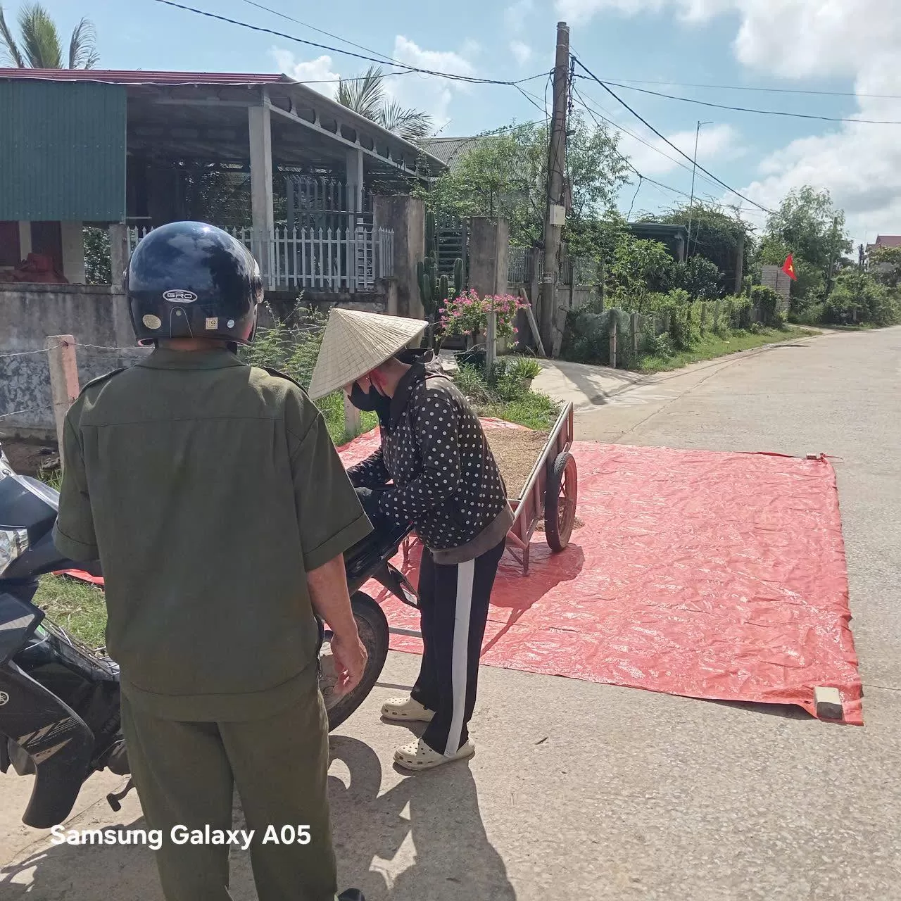 Ngày nay đất nước đổi mới, kinh tế phát triển, nhà cửa, đường làng ngõ xóm được bê tông hóa. Trong sản xuất nông nghiệp các giống lúa mới được đưa vào gieo trồng, năng suất tăng gấp bội, nhiều gia đình thu mỗi vụ hàng chục tấn, nhà ít cũng năm bảy tạ. Để chạy đua với thời tiết mưa, lũ thì sân kho, nhà văn hóa, đường làng ngõ xóm trở thành sân phơi. Nhờ đó lúa được được bảo quản tốt, hạn chế hư hỏng, ẩm mốc. Hiện nay việc phơi lúa trên các trục đường, lối xóm đã diễn ra thường xuyên, theo mùa, kéo dài khoảng trên dưới 10 ngày một vụ. Và nếu chiếu theo Nghị định số 168/2024/NĐ-CP (Điểm g, Điều 12) thì chắc đa phần người dân trên địa bàn đều vi phạm.