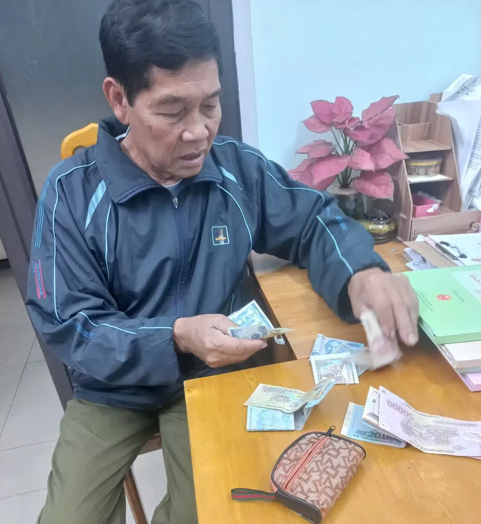 Ngay sau khi nhặt được, hai em đã nhanh chóng mang đến báo cho bác Lịch – bảo vệ UBND xã, nhờ hỗ trợ tìm và trả lại cho người bị mất.