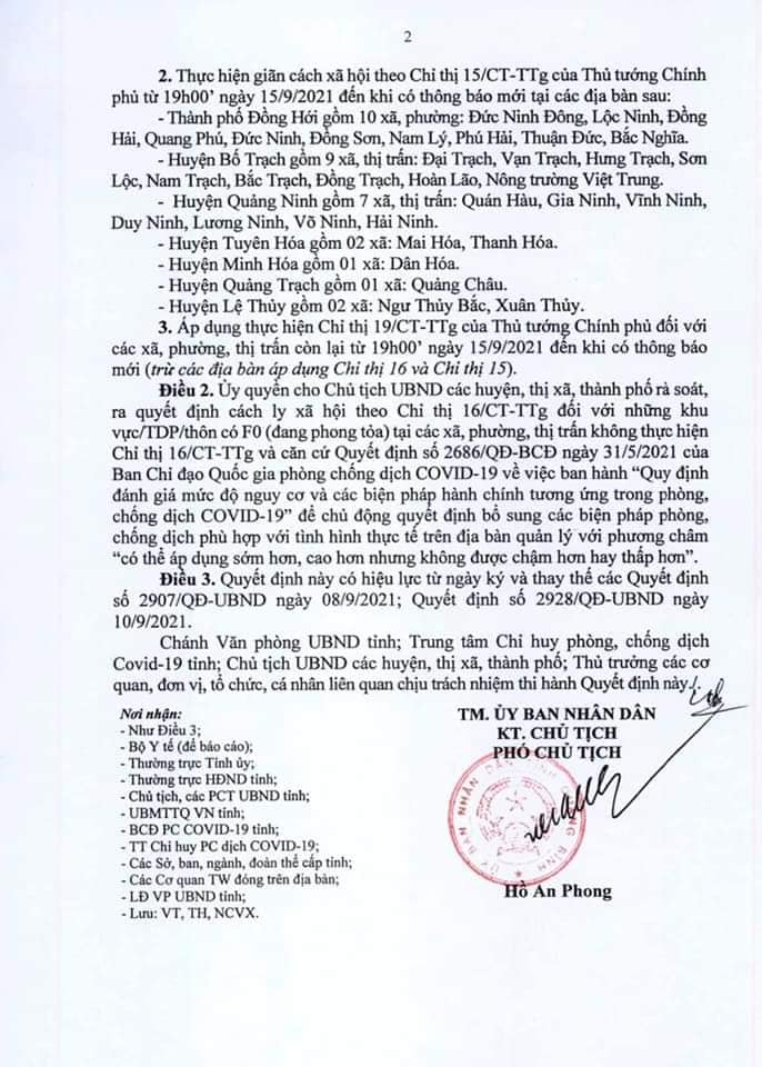 Quyết định của UBND tỉnh Quảng Bình về việc áp dụng cách ly theo Chỉ thị 19 của Thủ tướng Chính phủ đối với xã Hạ Trạch, huyện Bố Trạch trong phòng chống dịch Covid - 19