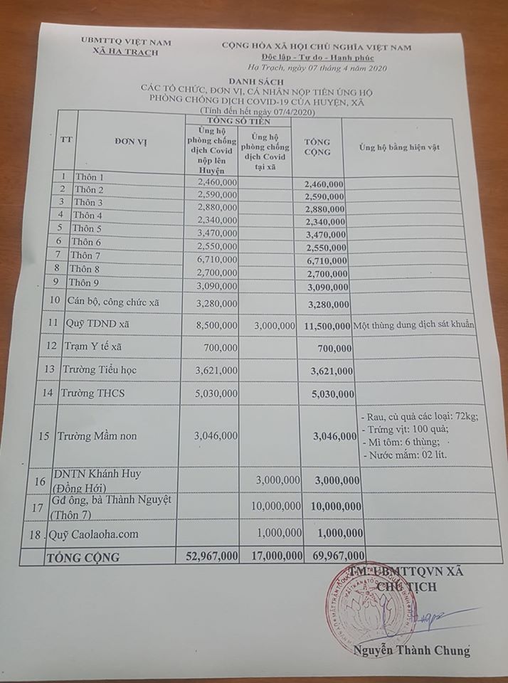 Ban chỉ đạo phòng chống dịch huyện, xã ghi nhận và gửi lời cảm ơn xâu sắc đến toàn thể CB, CNVC, NLĐ các cơ quan, đơn vị và nhân dân Hạ Trạch đã chung tay cùng với huyện và xã nhà phòng chống dịch COVID-19