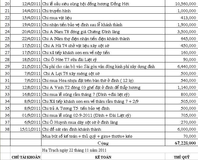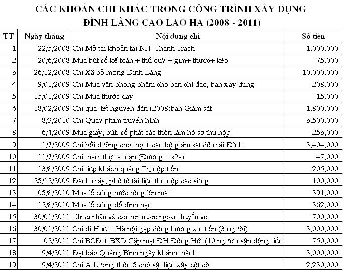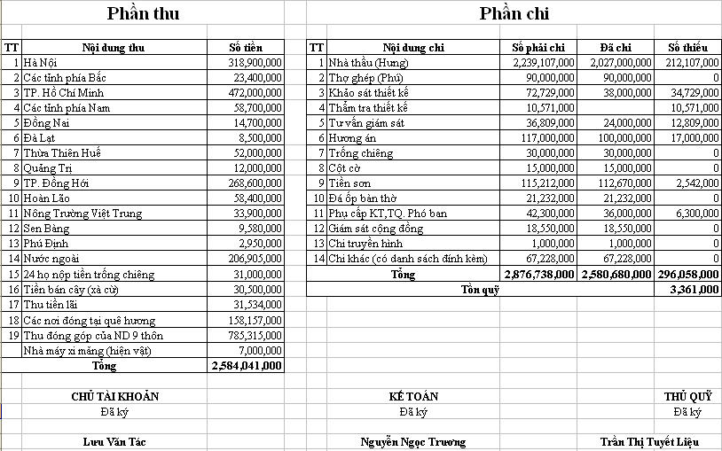 Giới thiệu quyết toán tổng hợp thu chi xây dựng Đình làng do UBND xã cung cấp ngày 9/7/2012