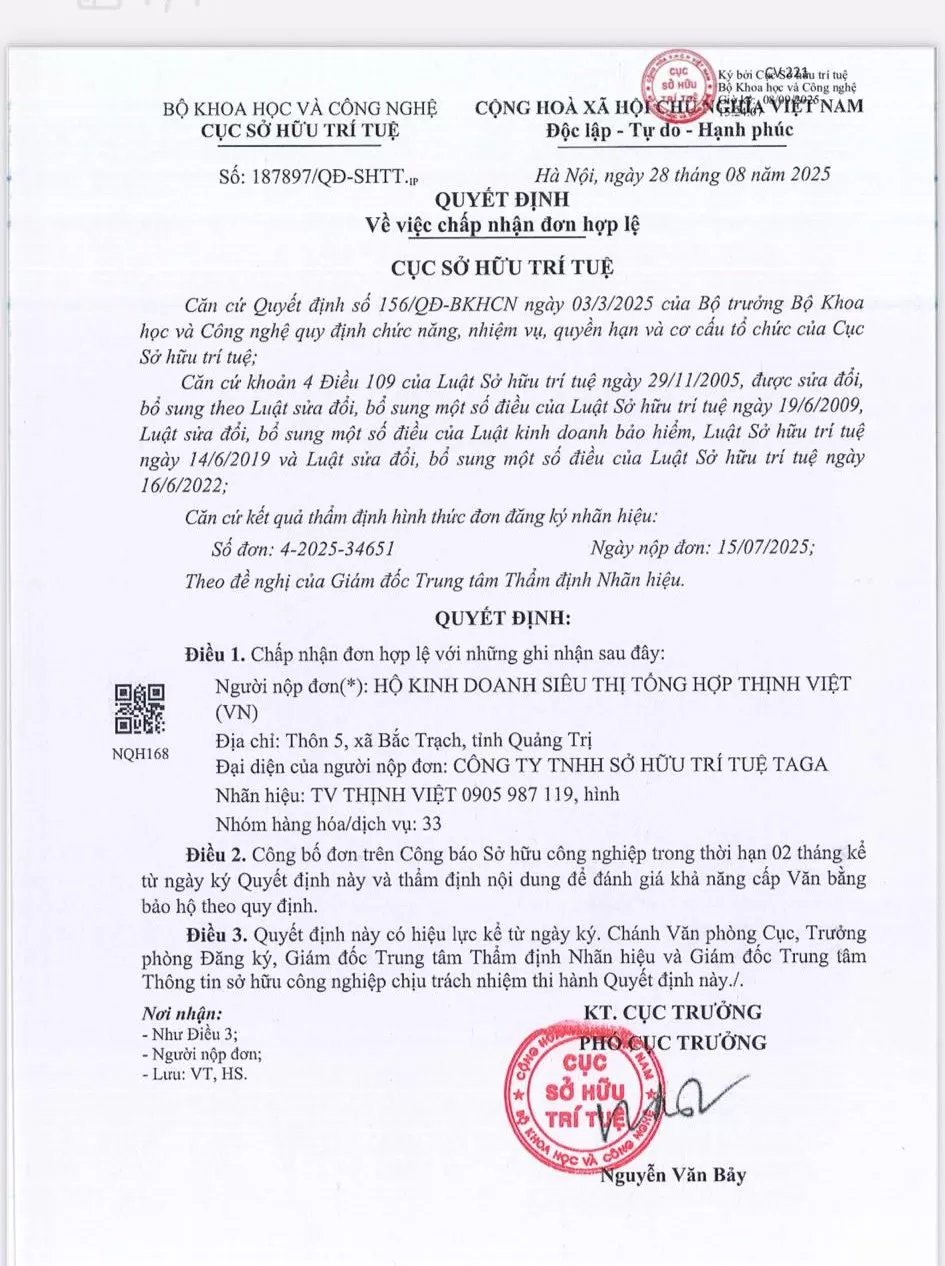 Siêu thị Thịnh Việt vừa thực hiện việc đăng ký Thượng hiệu. Việc đăng ký thương hiệu mang lại lợi ích về pháp lý, kinh doanh và thương hiệu, giúp doanh nghiệp bảo vệ khỏi bị giả mạo, tạo niềm tin với khách hàng và đối tác, đồng thời có quyền sở hữu độc quyền để khai thác thương mại. Việc này giúp xác lập quyền sở hữu hợp pháp, tránh tranh chấp, cho phép kiện tụng khi bị xâm phạm và tạo lợi thế cạnh tranh bền vững.