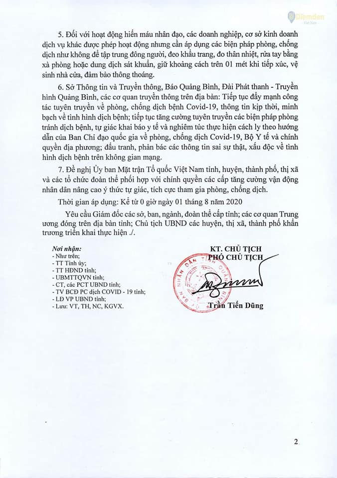 Trong giai đoạn dịch Covid – 19 diễn biến phức tạp, UBND tỉnh Quảng Bình đã có công văn số 1335/UBND-KGVX về việc hạn chế một số hoạt động dịch vụ và tụ tập đông người. Quê mình đã có những tấm gương gương mẫu trong phòng chống dịch Covid-19.