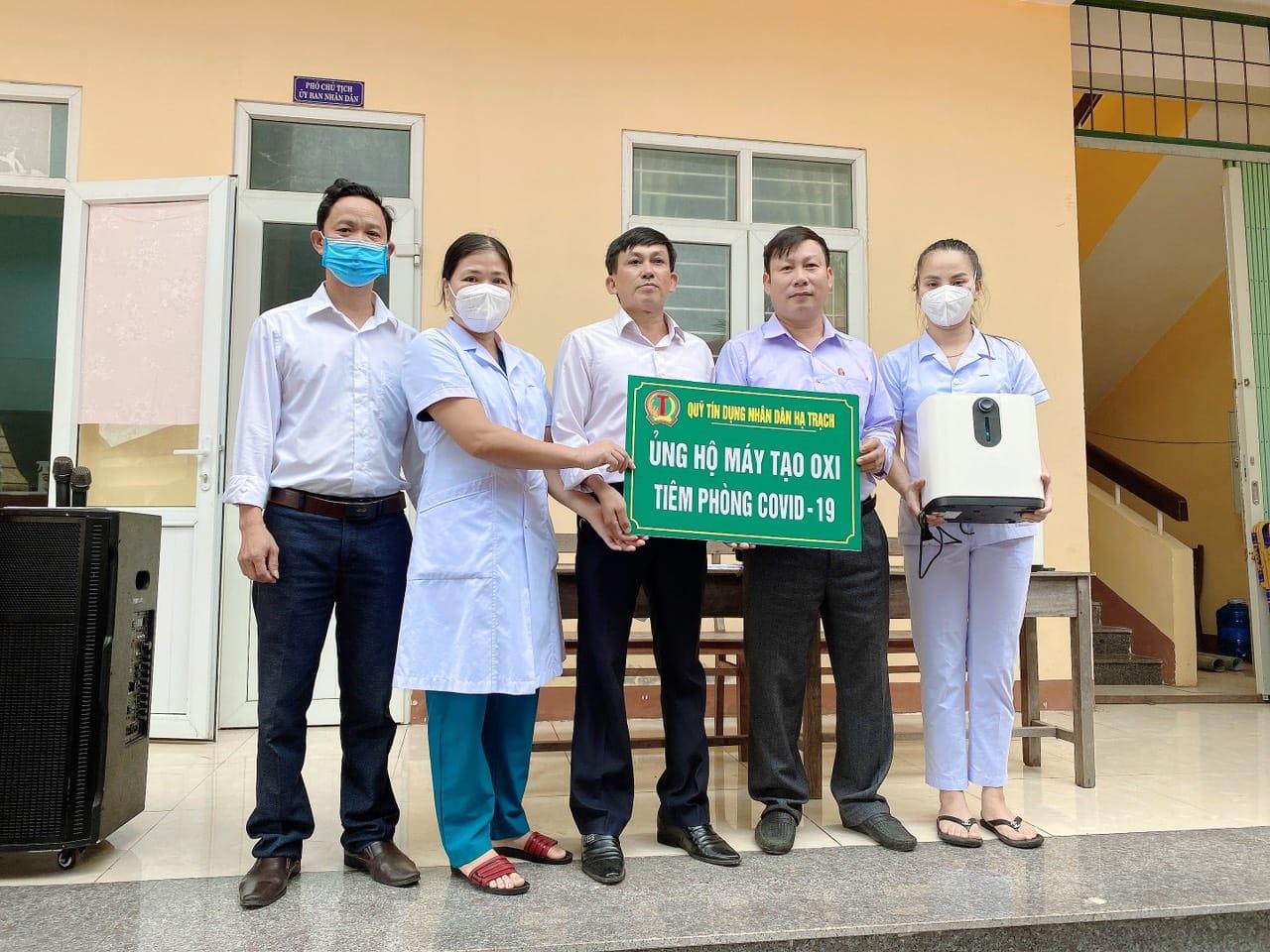Ngày 3/11/2021, trước sự chứng kiến của lãnh đạo xã, anh Nguyễn Văn Bé đại diện Quỹ tín dụng nhân dân xã Hạ Trạch và chị Phan Thị Bích Hạnh, xóm 10, hiện sống ở Tp. Huế đã trao tặng 2 máy tạo oxy cho trạm y tế xã Hạ Trạch, mỗi máy trị giá 11 triệu đồng để phục vụ cho việc chăm sóc sức khỏe của bà con và phòng chống dịch covid – 19.