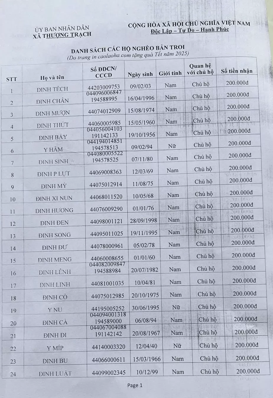 Nhân dịp Ất Tỵ 2025, trang tin caolaoha.com đã hỗ trợ cho 30 hộ nghèo và cận nghèo của bản Troi, xã Thương Trạch, huyện Bố Trạch mỗi hộ 200 ngàn đồng. Đây là năm thứ 3 liên tiếp trang tin hỗ trợ bà con nghèo bản Troi