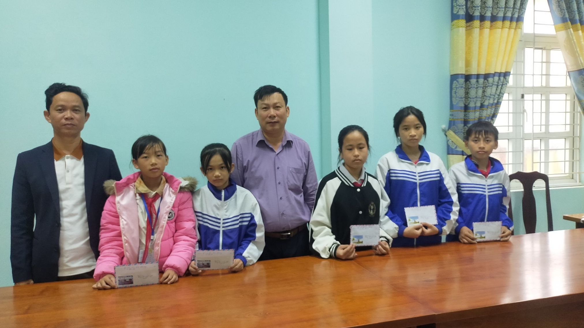 Gia đình anh Lưu Đức Khương cũng đã dành 6 phần quà, mỗi phần 500K đồng tặng 6 cháu học sinh nghèo của xã nhân dịp năm mới. Các cháu được nhận quà là:
