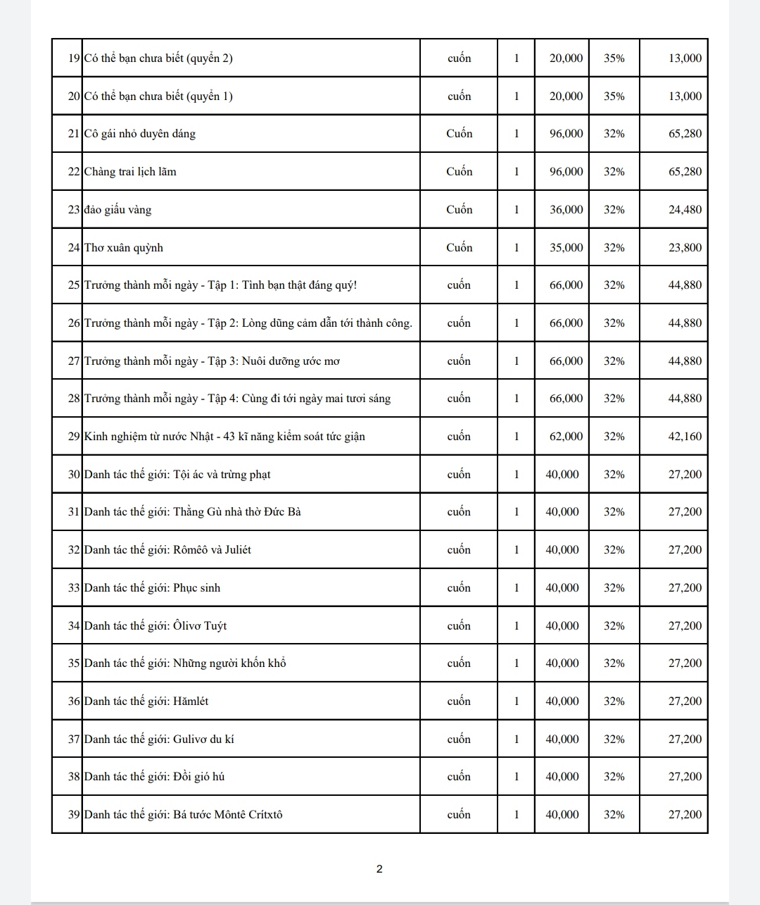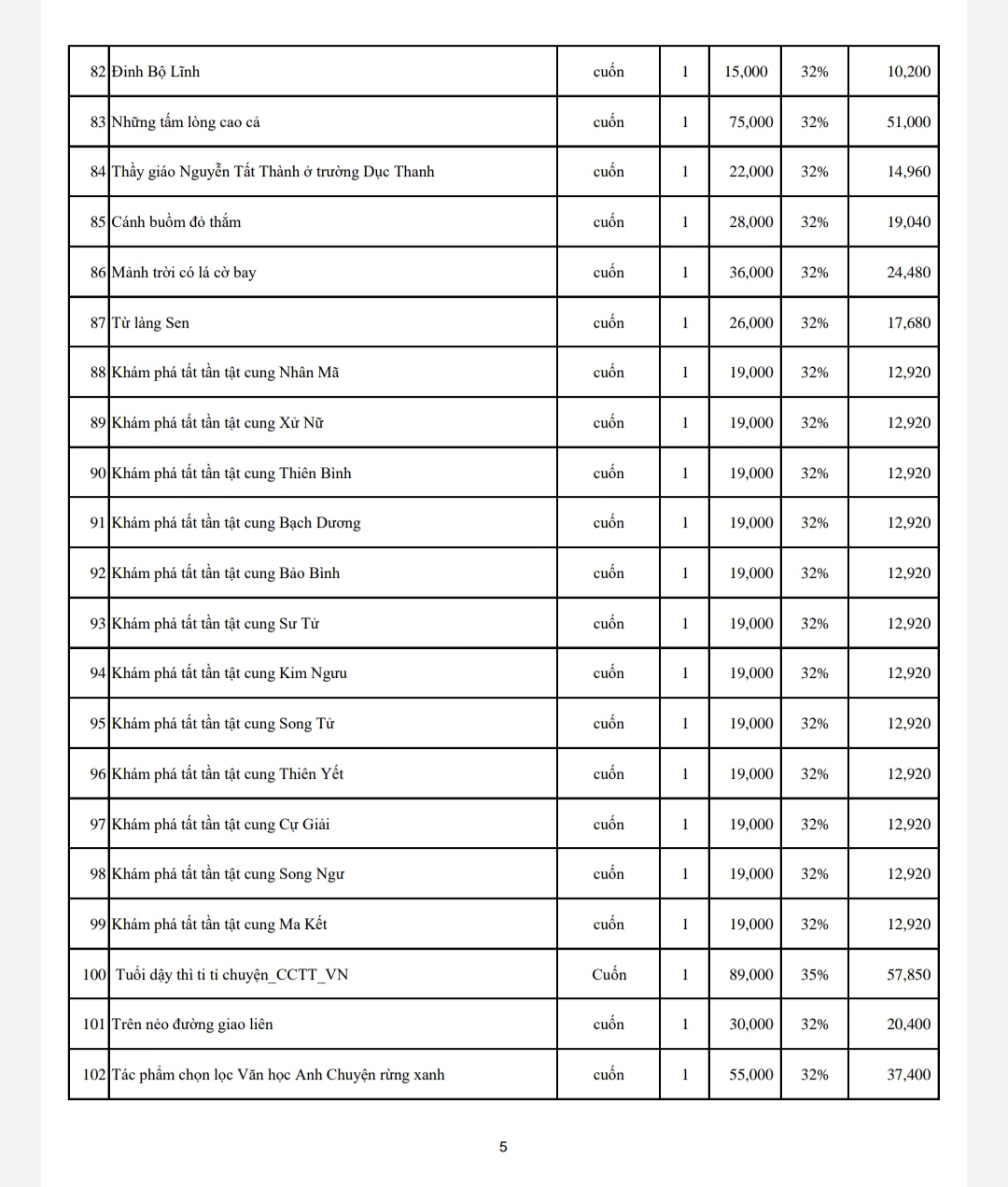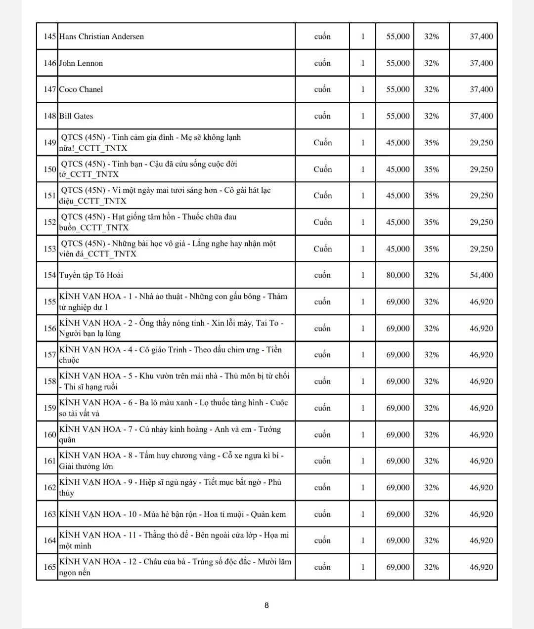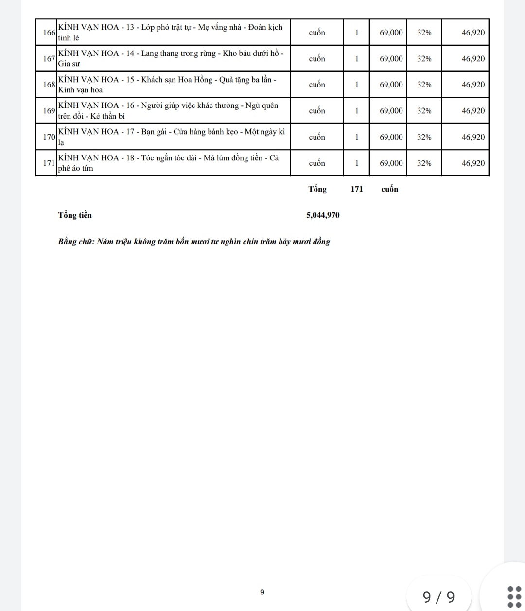 Dưới đây là số lượng và danh mục các đầu sách trao tặng lần này