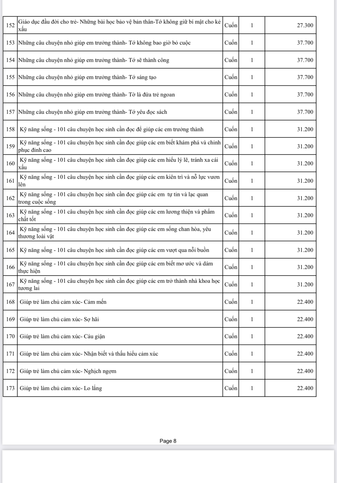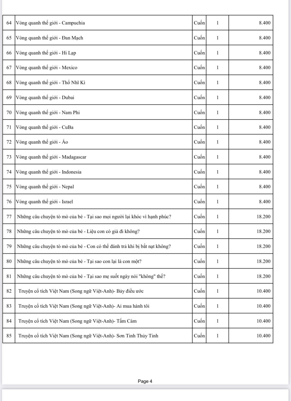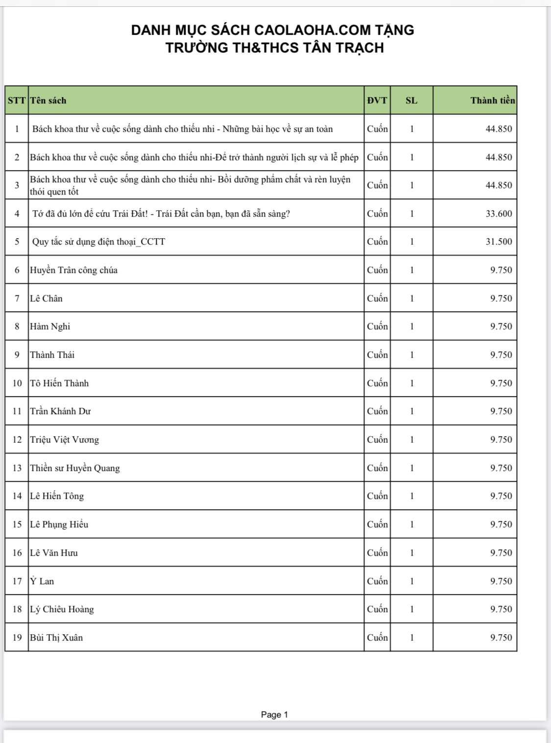 Dưới đây là danh mục sách, truyện trang tin tặng nhà trường