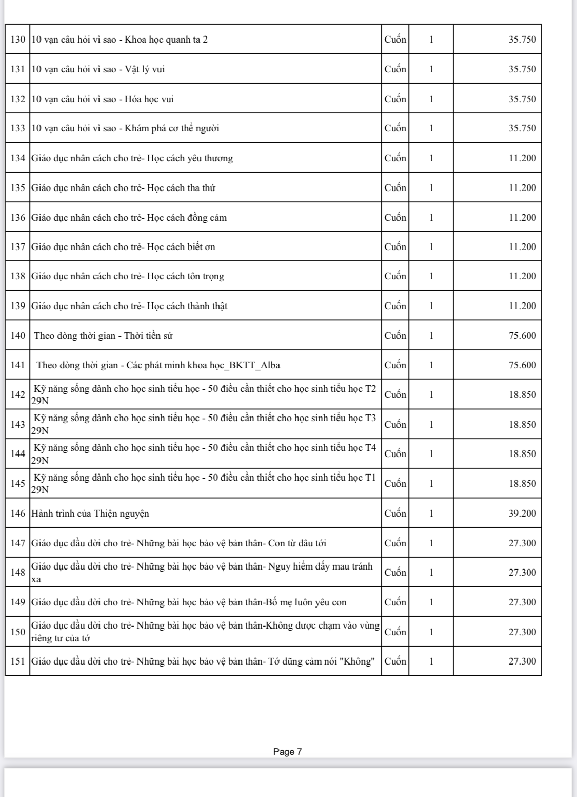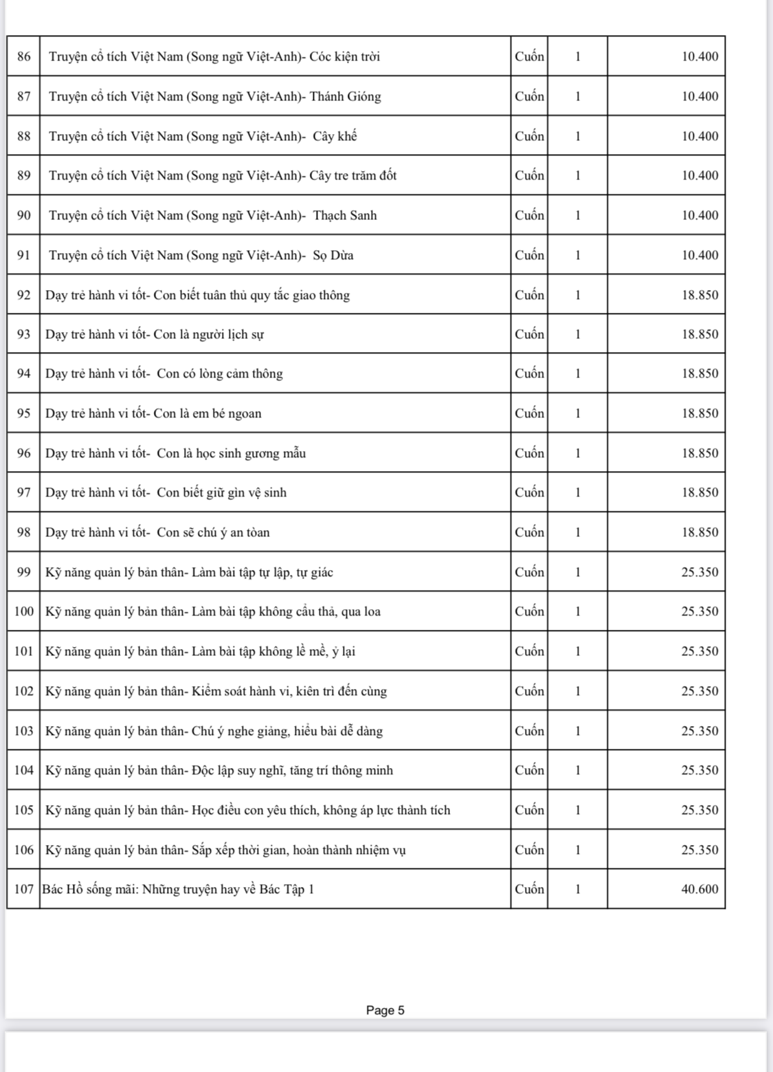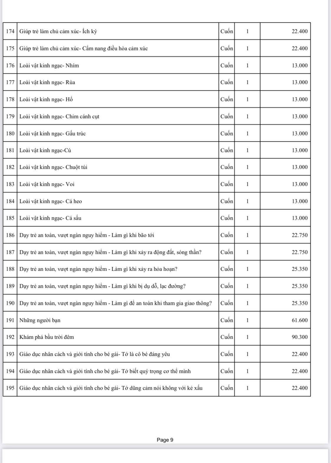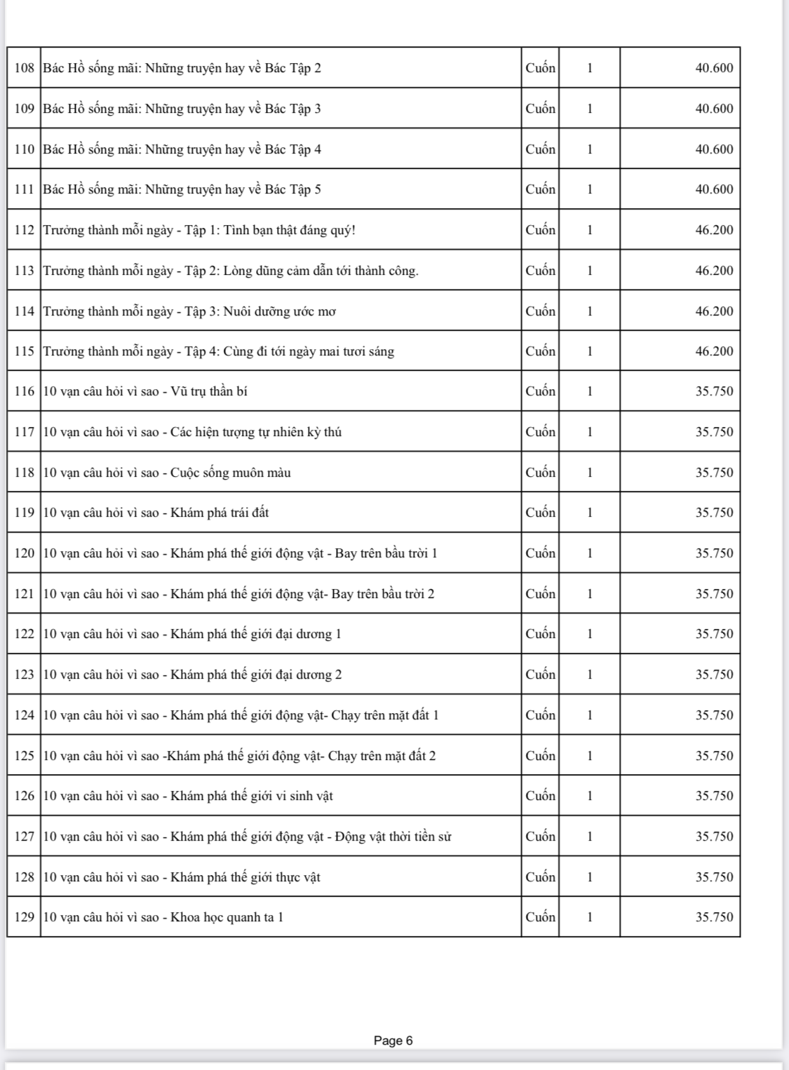 Dưới đây là danh mục sách, truyện trang tin tặng nhà trường