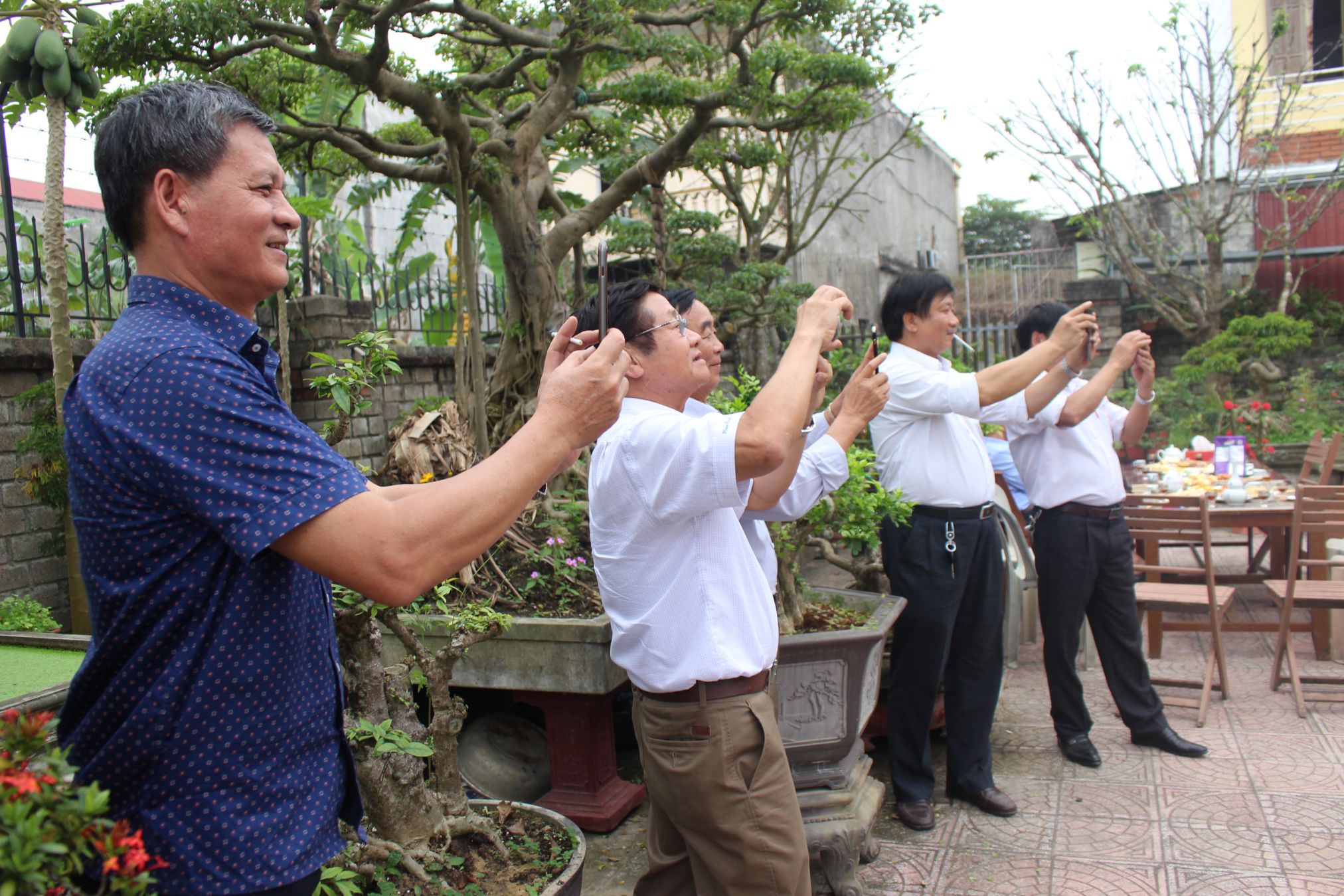 Theo thông lệ đầu Xuân, vợ chồng Nguyễn Hữu Định không tiếp khách trong nhà mà ra “cửa hậu” tiếp (anh Lê Chiêu Lĩnh hóm hĩnh ví von). Chả là, phía sau nhà anh là một vườn hoa cây cảnh, nếu ai đó mới đến lần đầu, mong sao được đến nhiều lần nữa bởi không chỉ hoa tươi, quả ngọt mà sự đón tiếp nồng hậu, nhiệt tình của chị Lê Phụng một người con gái lũy thép Vĩnh Linh Anh hùng được lớn lên và trưởng thành trong lực lượng vũ trang. Dưới bàn tay của một “nghệ nhân” giàu kinh nghiệm, hàng chục cây cảnh quý được uốn lượn một cách khéo léo công phu “đẹp đến mê hồn” của Đại tá Nguyễn Hữu Định. Gặp mặt đầu Xuân tại nhà Đại tá còn có Chủ tịch ủy ban nhân dân xã Hạ Trạch và các anh, các chị đồng hương Hạ Trạch tại thành phố Hồ Chí Minh về quê ăn tết rồi đi du Xuân cho đỡ nhớ quê nhà. Anh Lưu Văn Thái hiện đang sinh sống tại thành phố Hồ Chí Minh là một phi công kỳ cựu của không quân nhân dân Việt Nam trong thời kỳ chiến tranh và hạng hàng không dân dụng sau này luôn miệng: “Mình đi đây đi đó khá nhiều rồi nhưng về Đồng Hới nói chung, khu vườn thượng uyển của Nguyễn Hữu Định nói riêng quả là ít nơi có được”. Trong vườn “bách thảo” thu nhỏ với hàng trăm loại cây, chim, cá cảnh…“tiệc” đã bày sẵn trên bàn, thế mà mọi người chẳng ai chịu ngồi cứ thi nhau ghi hình, chụp ảnh…làm náo cả một khu vườn mang nặng sắc Xuân.