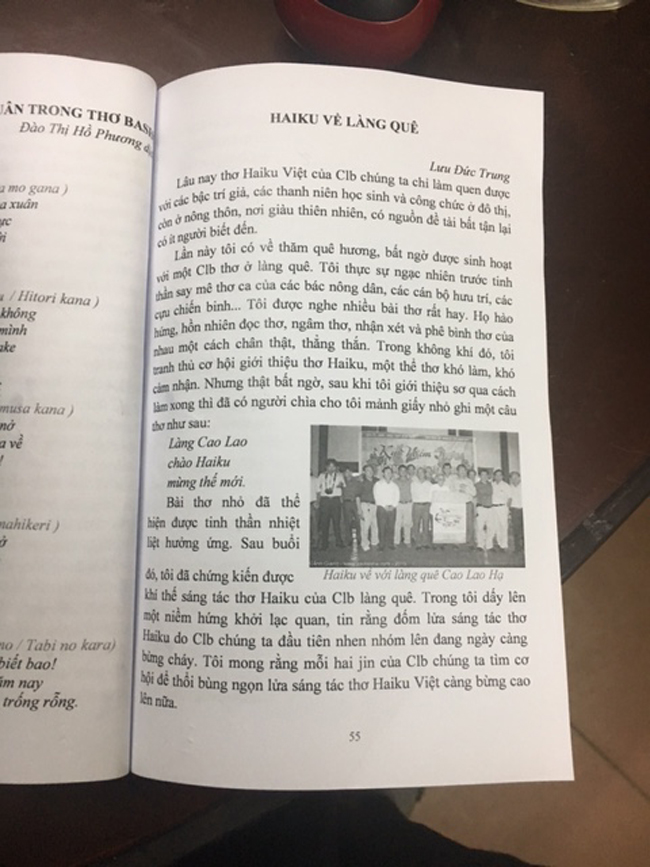 Thơ Haiku về làng Cao Lao Hạ20:44 - 31/12/2017Giới thiệu bài viết của PGS.TS Lưu Đức Trung về thơ Haiku về làng Cao Lao Hạ đăng trên tập san Thơ Haiku Việt xuân năm 2016 .Tác giả: Lưu Đức TrungChia sẻ: