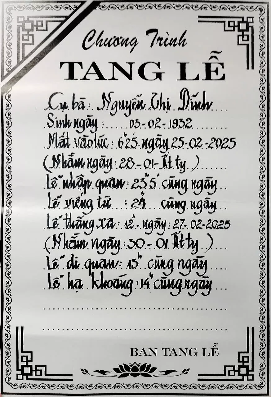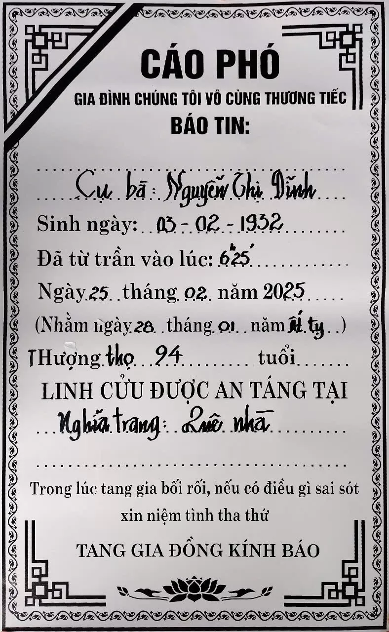 Đã từ trần ngày 25/2/2025 (nhằm ngày 28 tháng 1 Ất Tỵ)