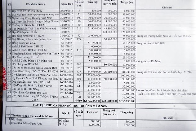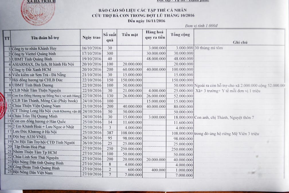 Danh sách các tập thể, cá nhân ủng hộ bà con đợt lũ lụt tháng 10/201607:10 - 25/01/2017Danh sách các tập thể, cá nhân ủng hộ bà con đợt lũ lụt tháng 10/2016 Tác giả: Nguyễn Thành ChungChia sẻ: