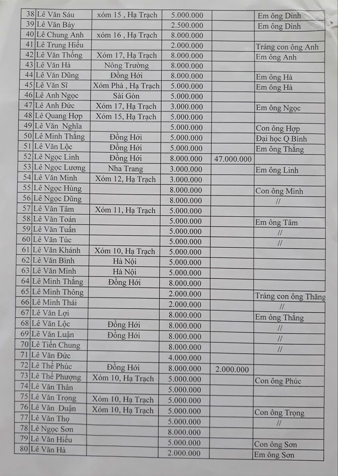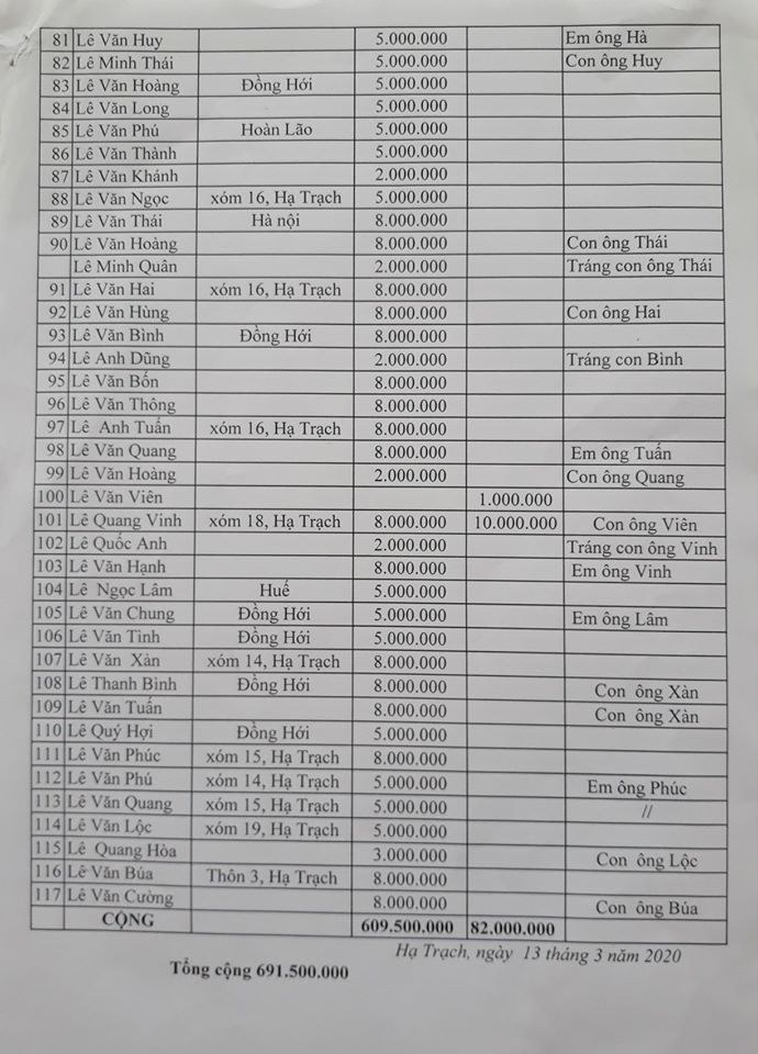 Danh sách đã đóng góp