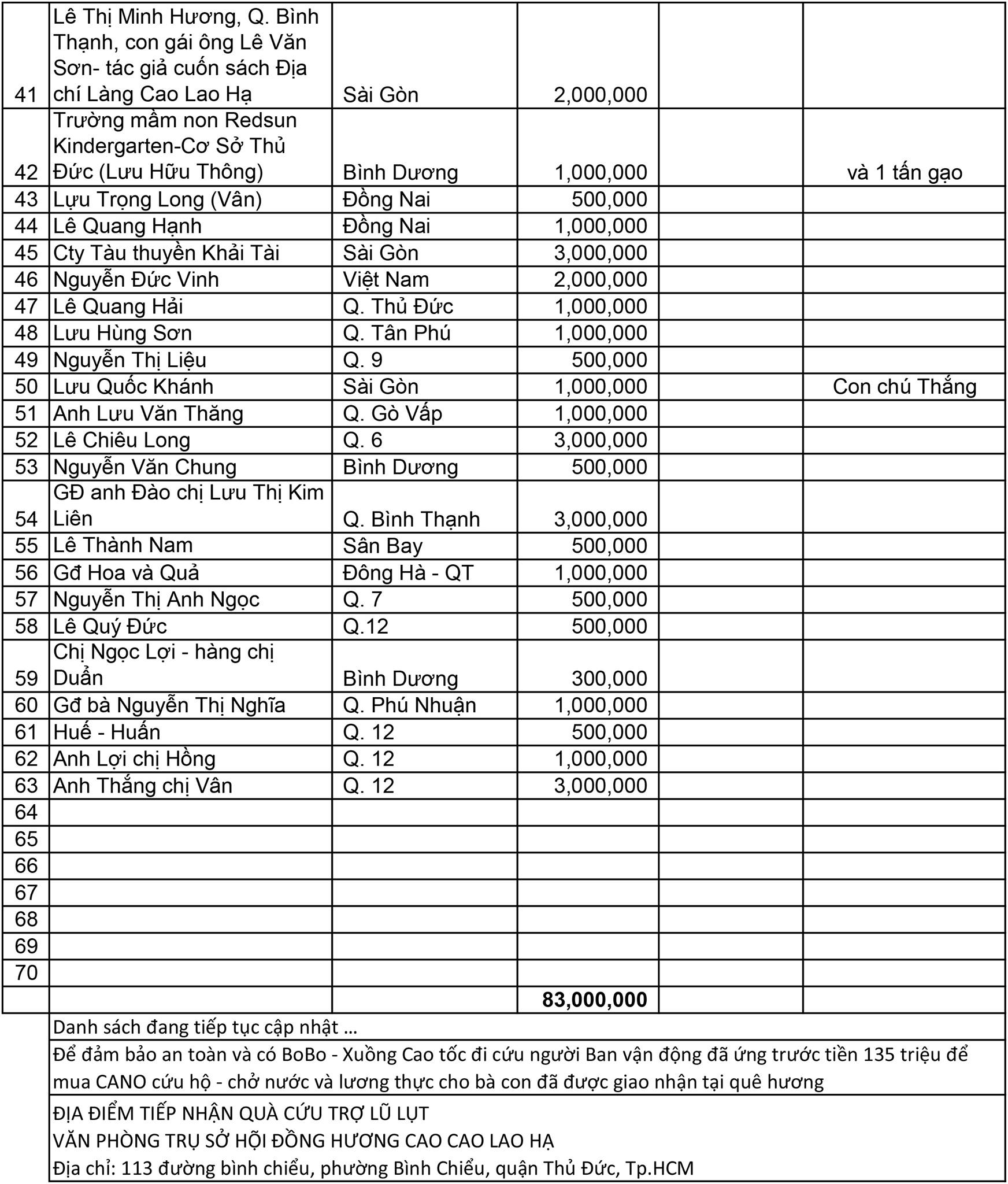 - Quỹ caolaoha.com: 3.000.000đ (ba triệu)