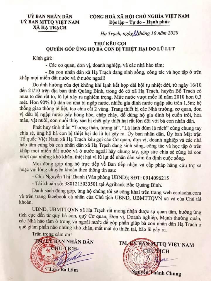 Danh sách ủng hộ bà con quê hương khắc phục hậu quả lũ lụt