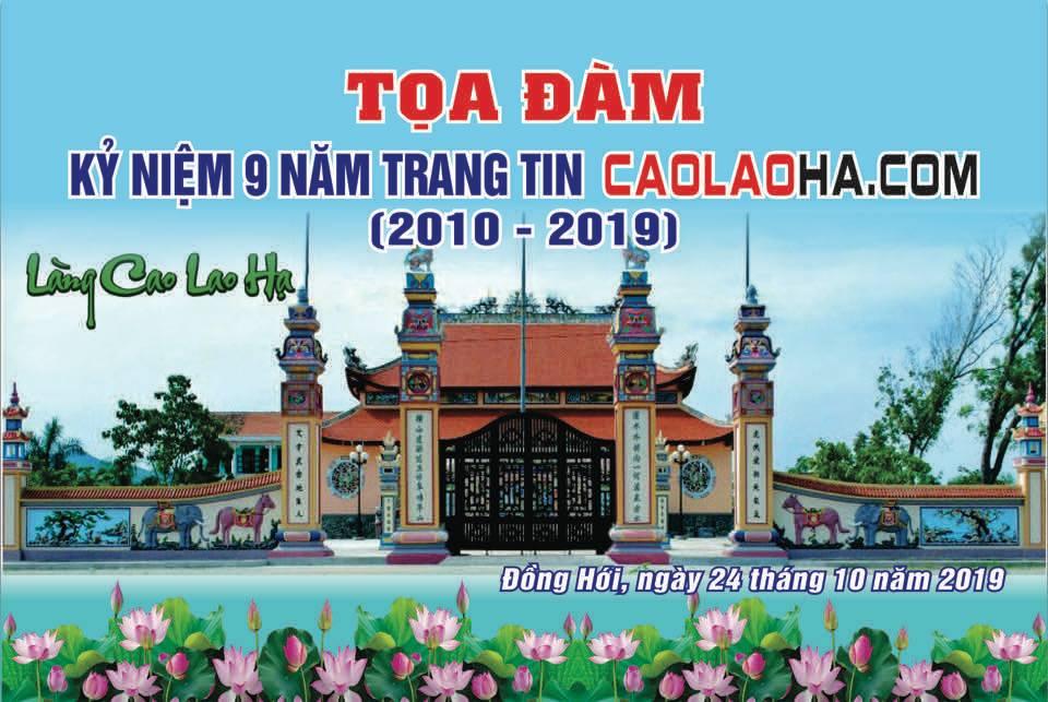 Nhân dịp kỷ niệm 9 năm thành lập trang tin caolaoha.com, Ban biên lạc Hội đồng hương Hạ Trạch và Hội cộng tác viên caolaoha.com tại Tp. Đồng Hới trân trọng kính mời bà con quan tâm đến trang tin quê hương đến dự buổi tọa đàm